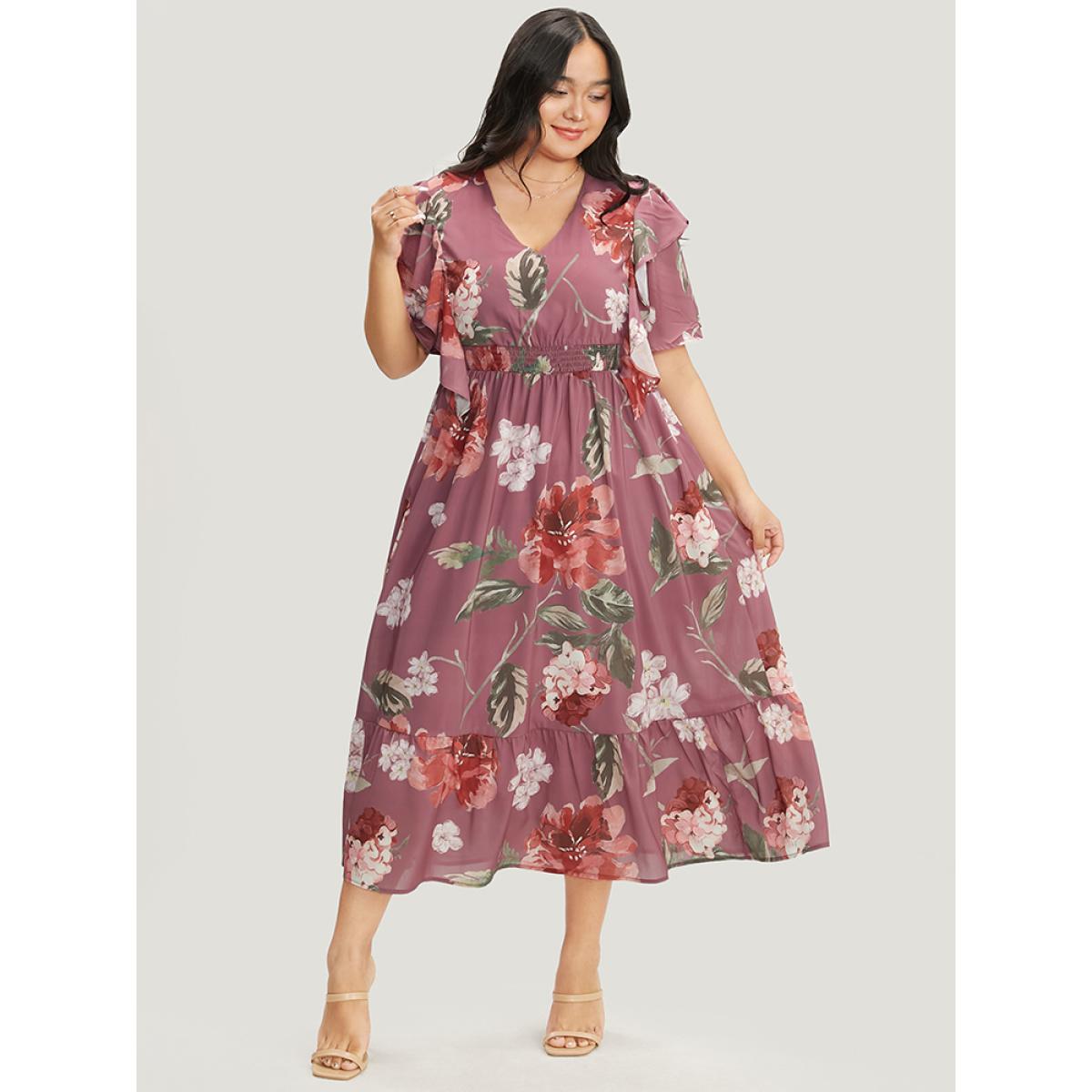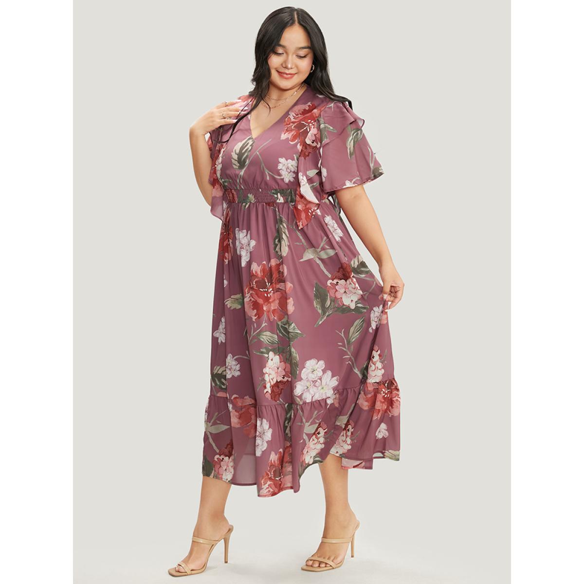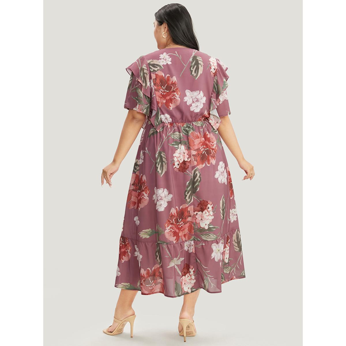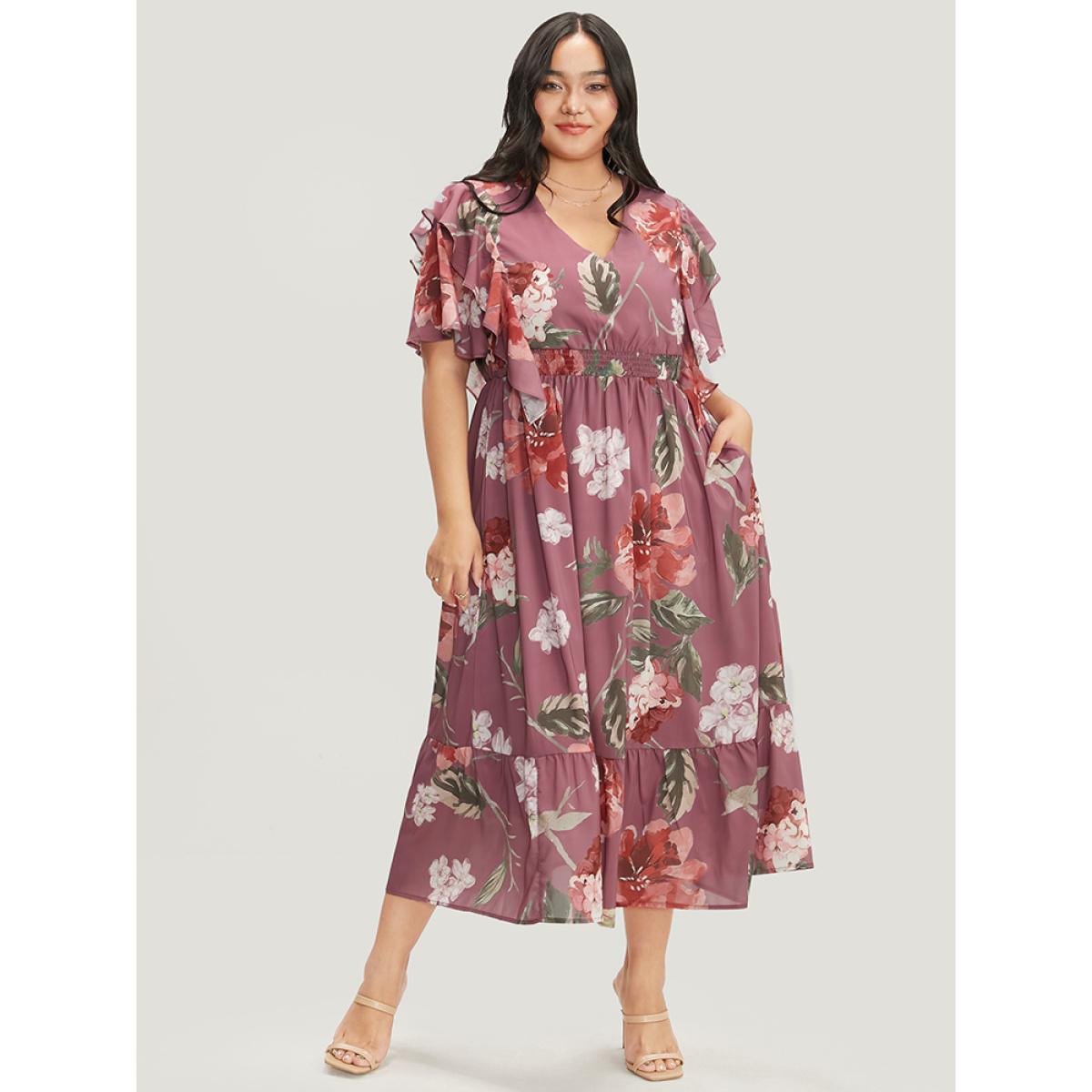 Floral Wrap Plus Size Women Vacation Midi Dress Dailywear Pocket Ruffle Sleeve Short Sleeve V Neck Pocket Elegance Dresses BloomChic Product Image