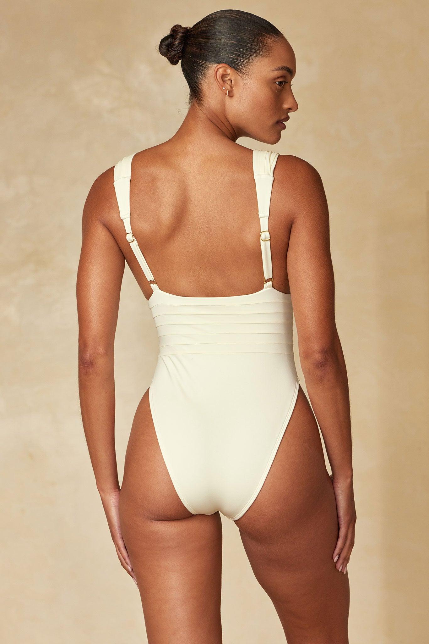 Equal parts sexy & supportive Equal parts sexy & supportive. Our Florence One Piece is the perfect combination of our best selling Aruba & Corsica One Piece. Designed for support and comfort this one piece features a supportive waist with the pleated detailing and wide shoulder straps. Finished with a flattering deep v-neckline and cheeky bottom coverage. Features:Deep V necklinePleated waist detailWide shoulder straps with adjustable slidersHigh legCheeky bottom coverage Length:P: 14.87”S: 15.5”M: 16.12”L: 16.75”Care:Hand wash cold. Lay flat to dry indoors.Click here for our care tips.