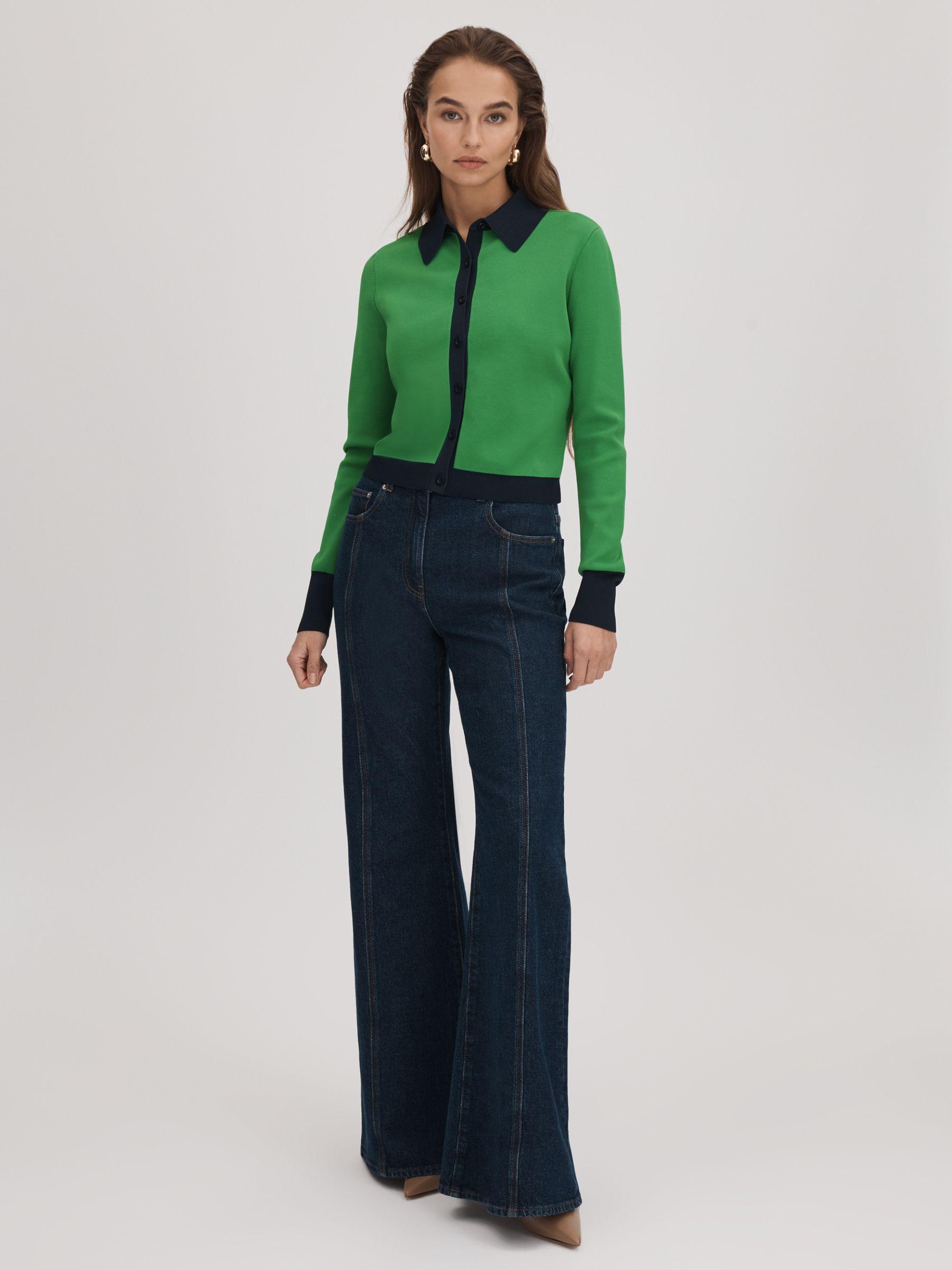 This bright green cardigan is knitted with ample stretch to sit close to the body and it’s finished with contrast detailing throughout. Open collar Button-front closure Contrast trims Fitted Florere, curated by Reiss, is a new brand for women that celebrates the boldly feminine, creating timeless and eye-catching pieces from vintage archives, then reimagining them in vibrant colourways and fluid fits.
