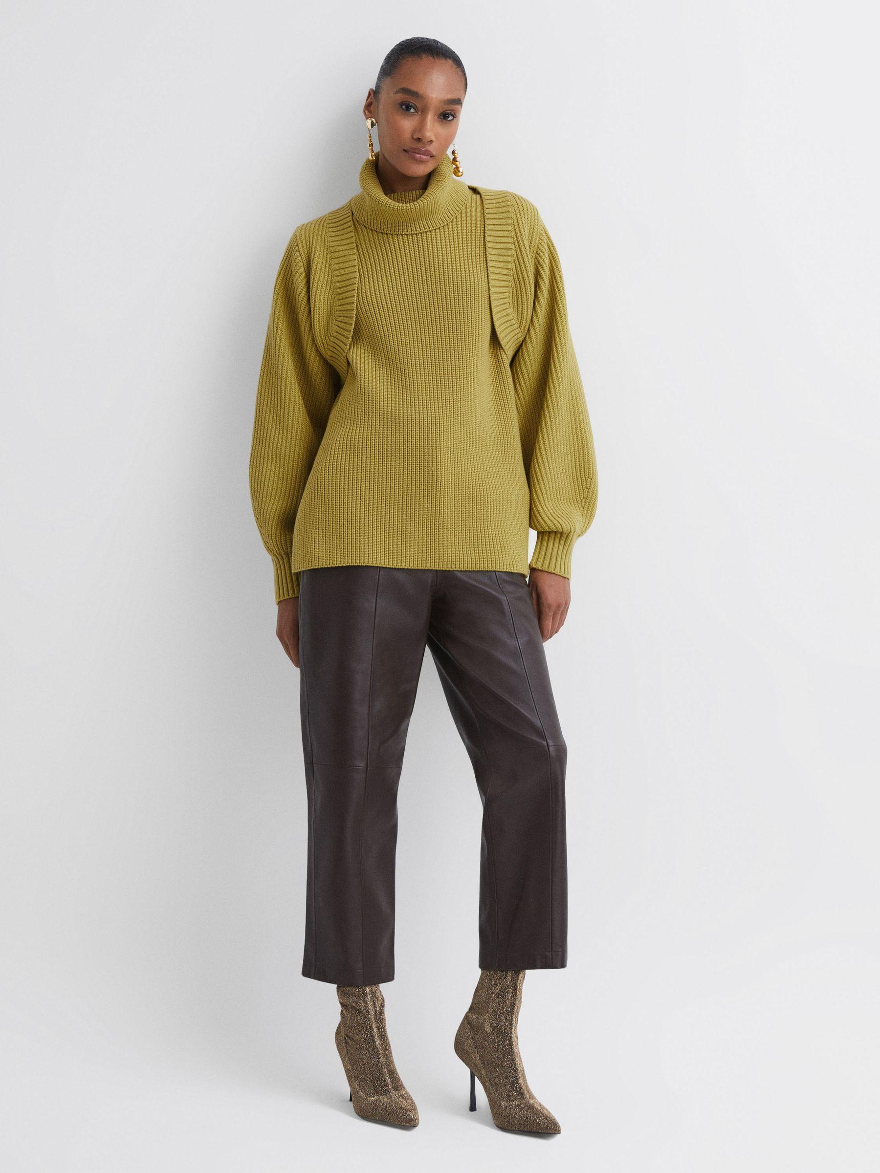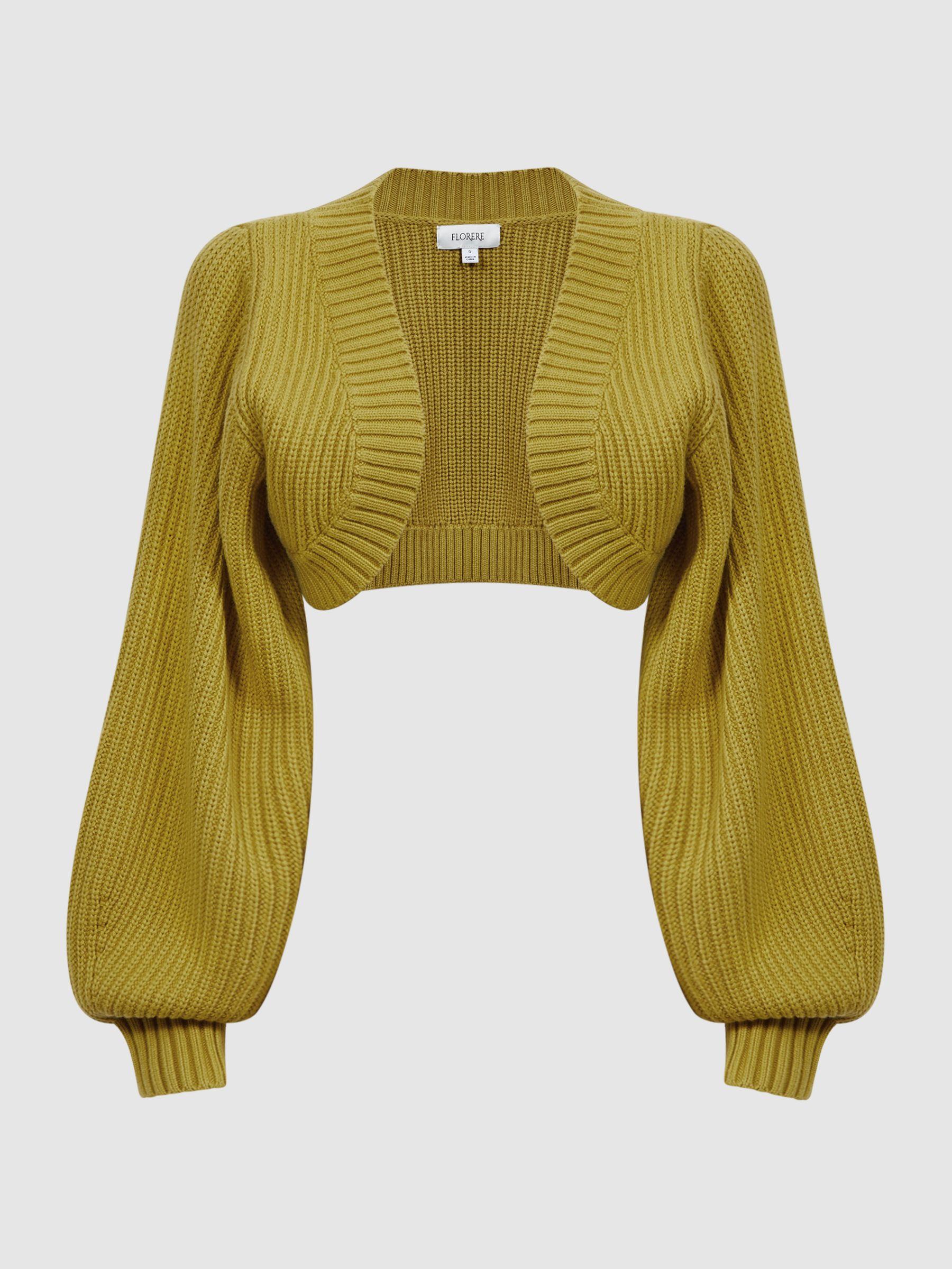 Florere Knitted Blouson Sleeve Shrug in Lime