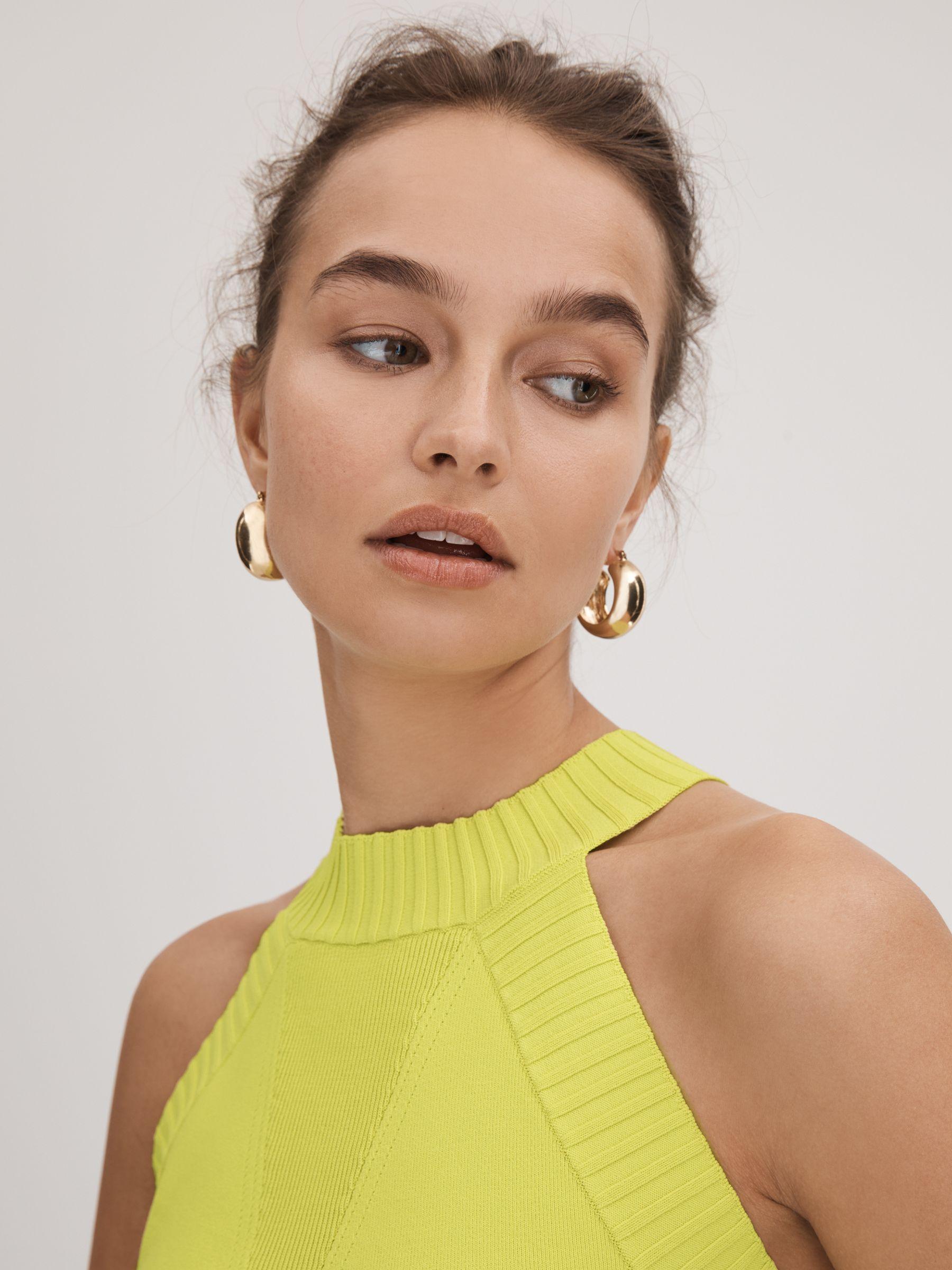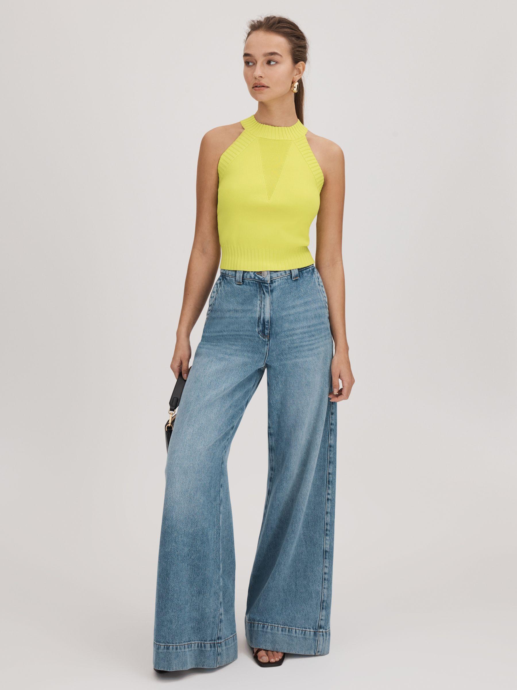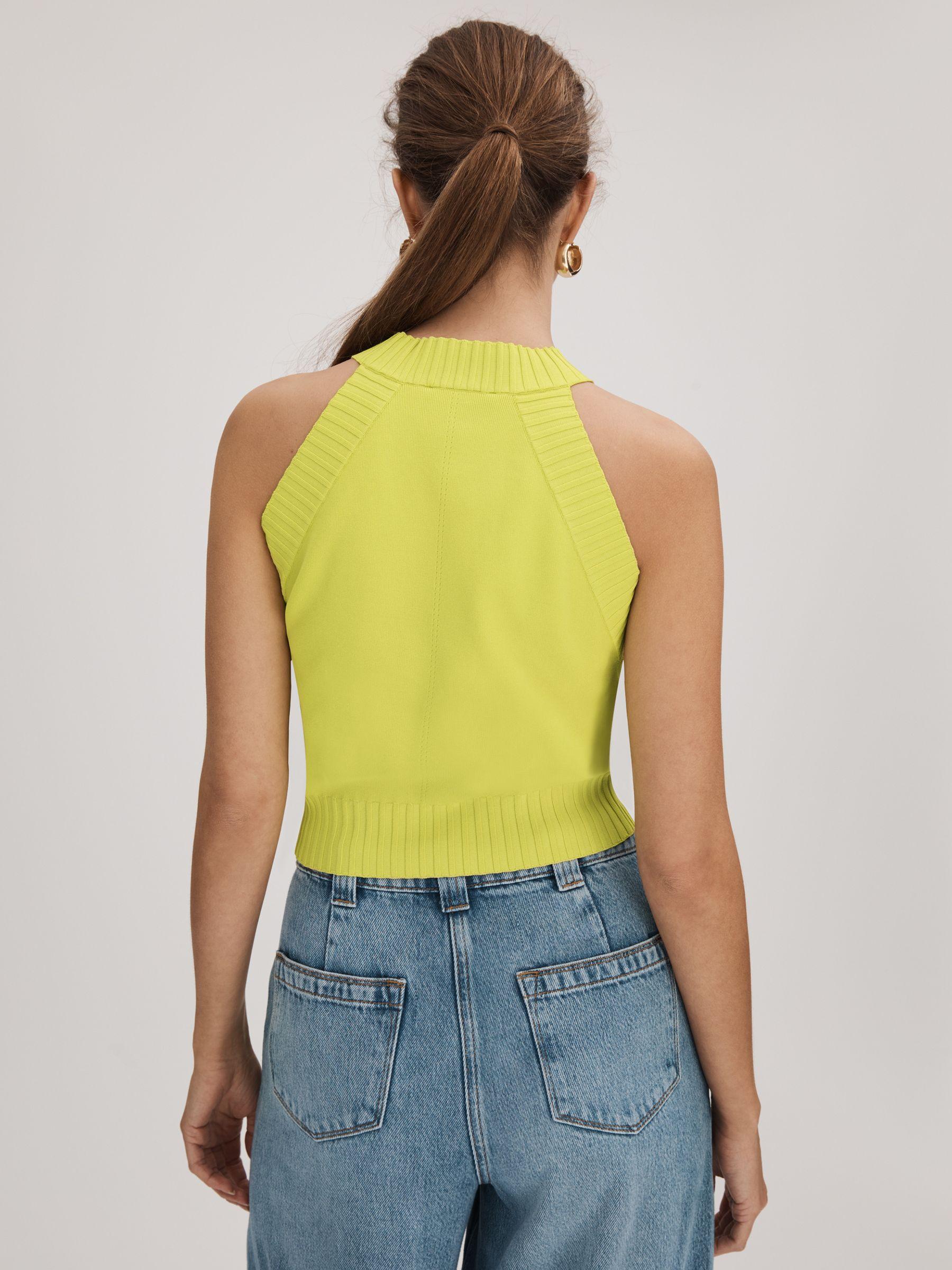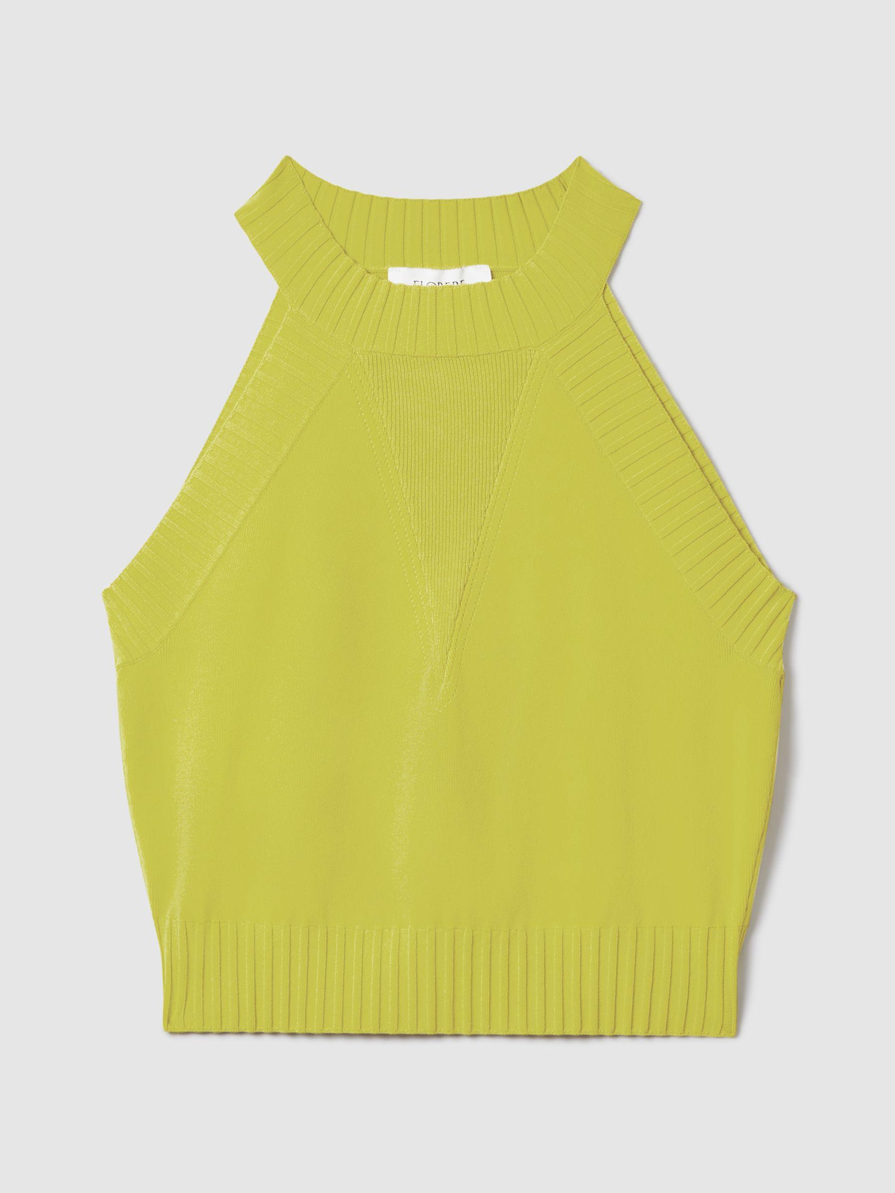 Knitted from a high-stretch compressive fabric and designed with a halter neckline, this vest hugs the body in a slightly cropped profile. Tactful stitch detailing features to the chest. Halter neckline Cropped Fitted Florere, curated by Reiss, is a new brand for women that celebrates the boldly feminine, creating timeless and eye-catching pieces from vintage archives, then reimagining them in vibrant colourways and fluid fits.