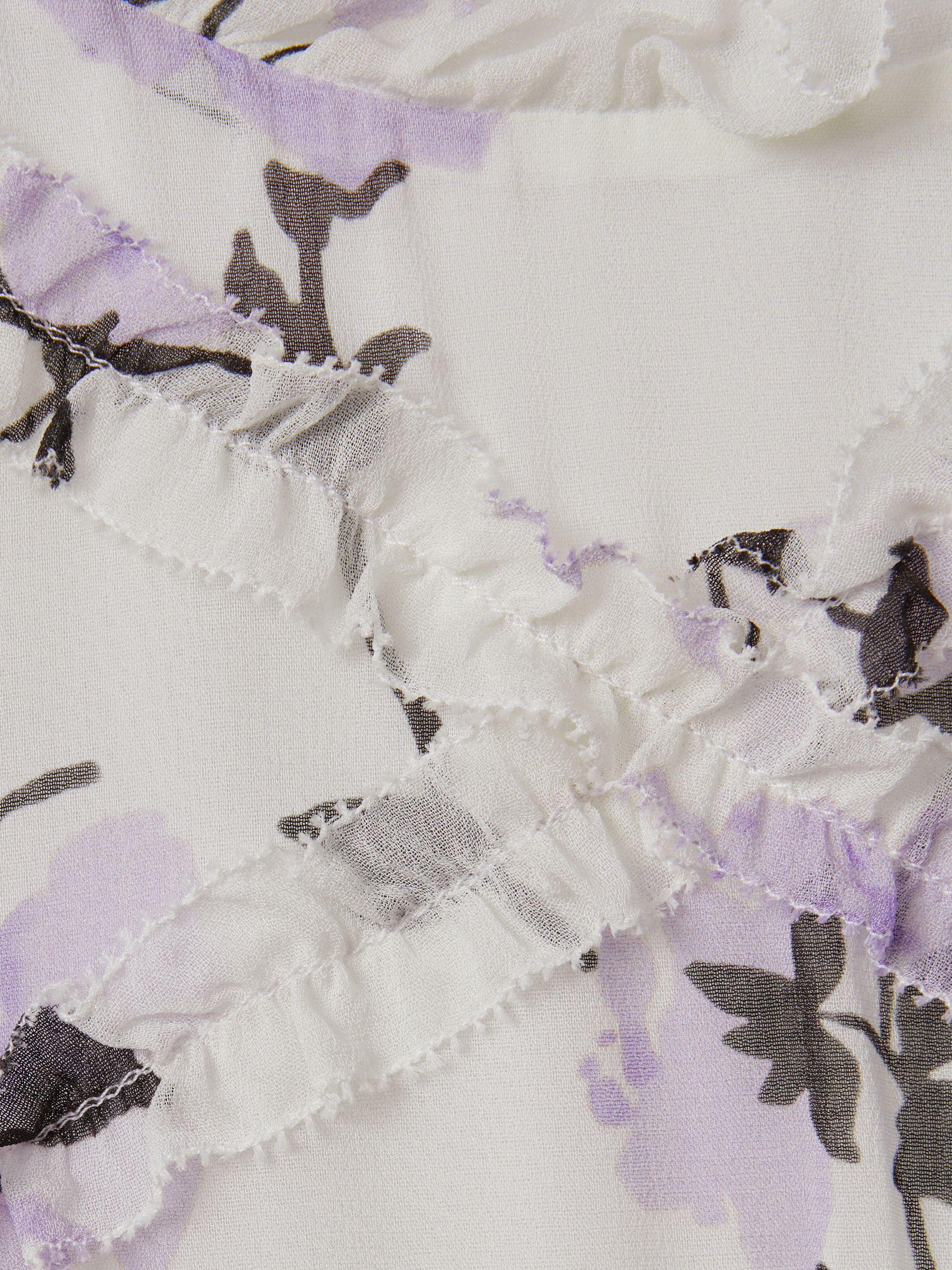 This printed mini dress is fitted with a voluminous skirt that’s softly pleated from the waist. Puff sleeves enhance the silhouette and ruffle detailing is added throughout. Florere's In Botanics print is inspired by a vintage tropical artwork, encompassing intricate brushstrokes with a modern take on colour. Ruffle detailing Puff sleeves Fit-and-flare silhouette Zip closure to reverse Mini length Lined Florere, curated by Reiss, is a new brand for women that celebrates the boldly feminine, creating timeless and eye-catching pieces from vintage archives, then reimagining them in vibrant colourways and fluid fits.
