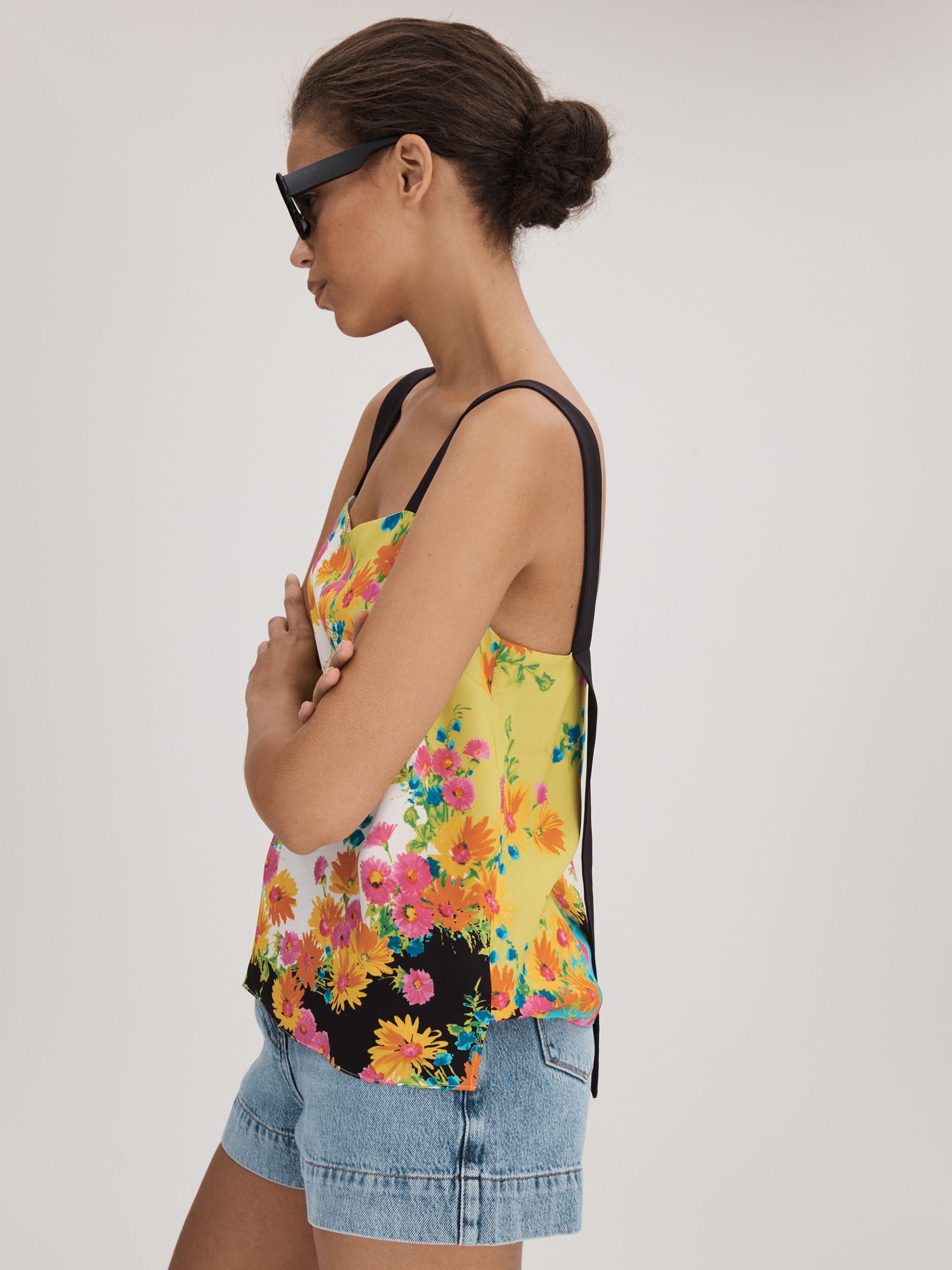 This floral print cami falls in a straight fit against the body. Its square neckline is tethered with exaggerated shoulder straps which drape at the back. Florere's Pop Floral print is inspired by a hand-painted vintage artwork, encompassing heritage details whilst characterising a modern feel. Square neckline Exaggerated shoulder straps Lined Florere, curated by Reiss, is a new brand for women that celebrates the boldly feminine, creating timeless and eye-catching pieces from vintage archives, then reimagining them in vibrant colourways and fluid fits.