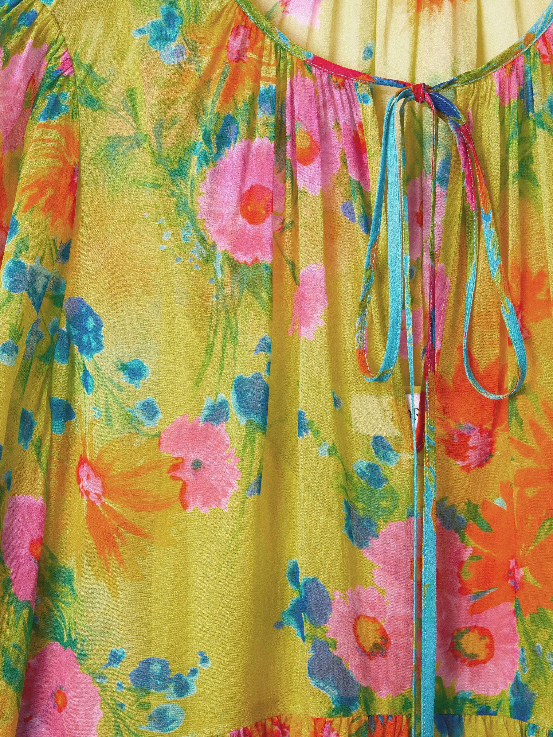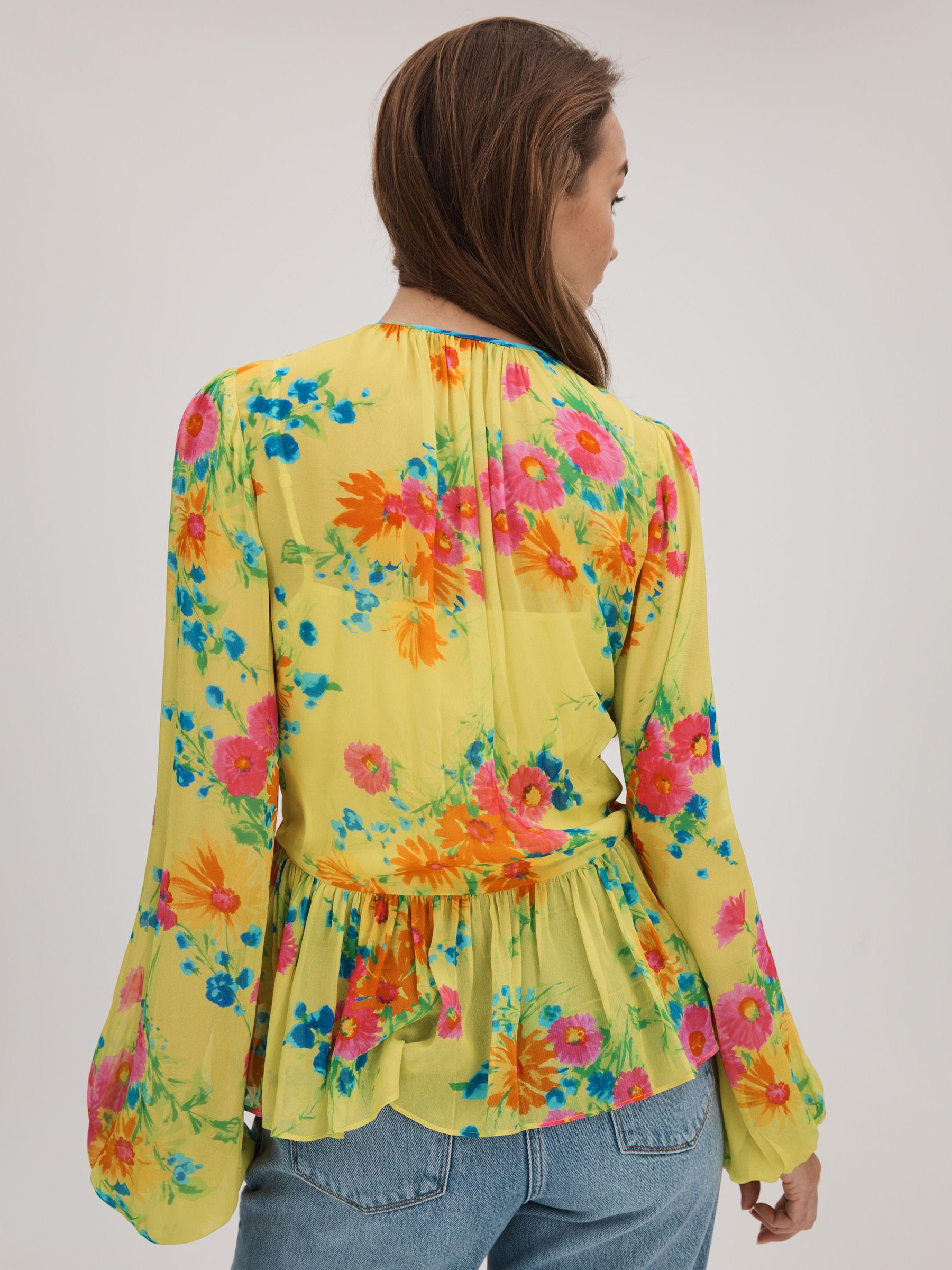 This relaxed blouse is cut from a semi sheer fabric in Florere’s Pop Floral print and fitted with a removable cami. The neckline fastens with a tie element at the front and blouson sleeves are added. Florere's Pop Floral print is inspired by a hand-painted vintage artwork, encompassing heritage details whilst characterising a modern feel. Tie neck Removable cami Blouson sleeves Elasticated cuffs Relaxed fit Florere, curated by Reiss, is a new brand for women that celebrates the boldly feminine, creating timeless and eye-catching pieces from vintage archives, then reimagining them in vibrant colourways and fluid fits.
