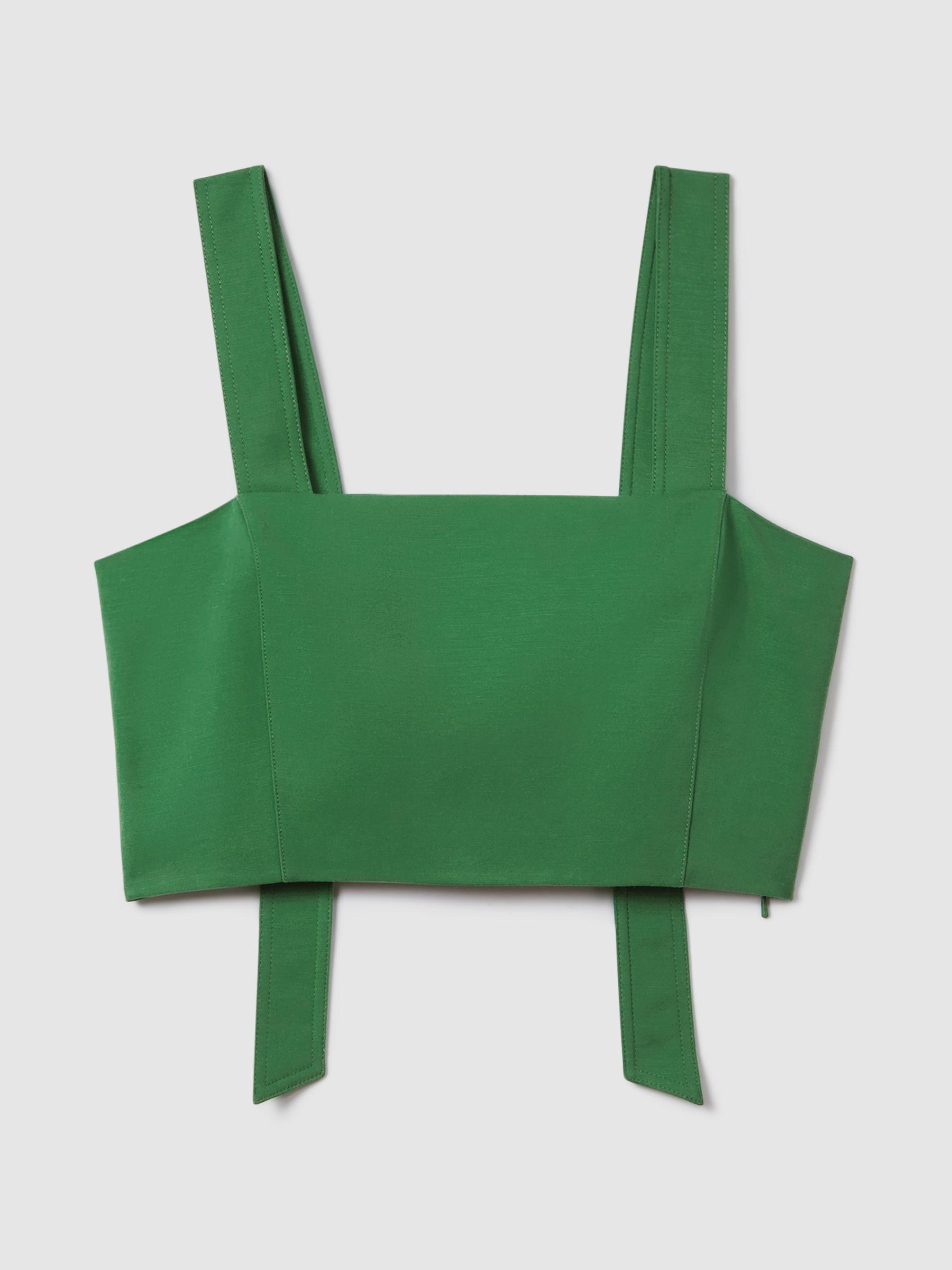 A cotton-sateen weave lends this cropped top a smooth, lustrous handle. It’s designed with a square neckline, exaggerated shoulder straps, and gold-tone buckles. Cotton-sateen fabrication Square neckline Exaggerated shoulder straps Gold-tone buckles Zip-closure to side Cropped