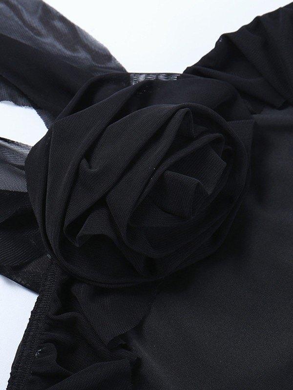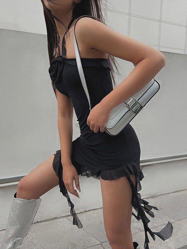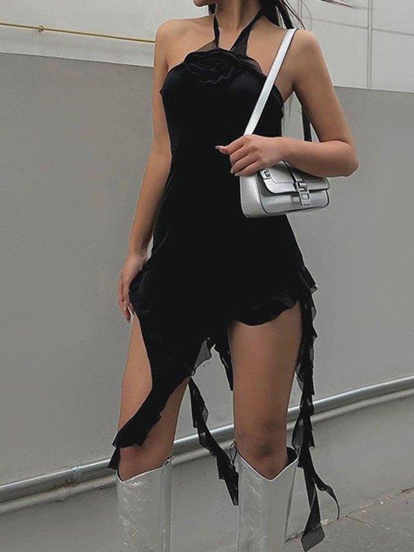 Flower Embellish Asymmetric Halter Mini Dress