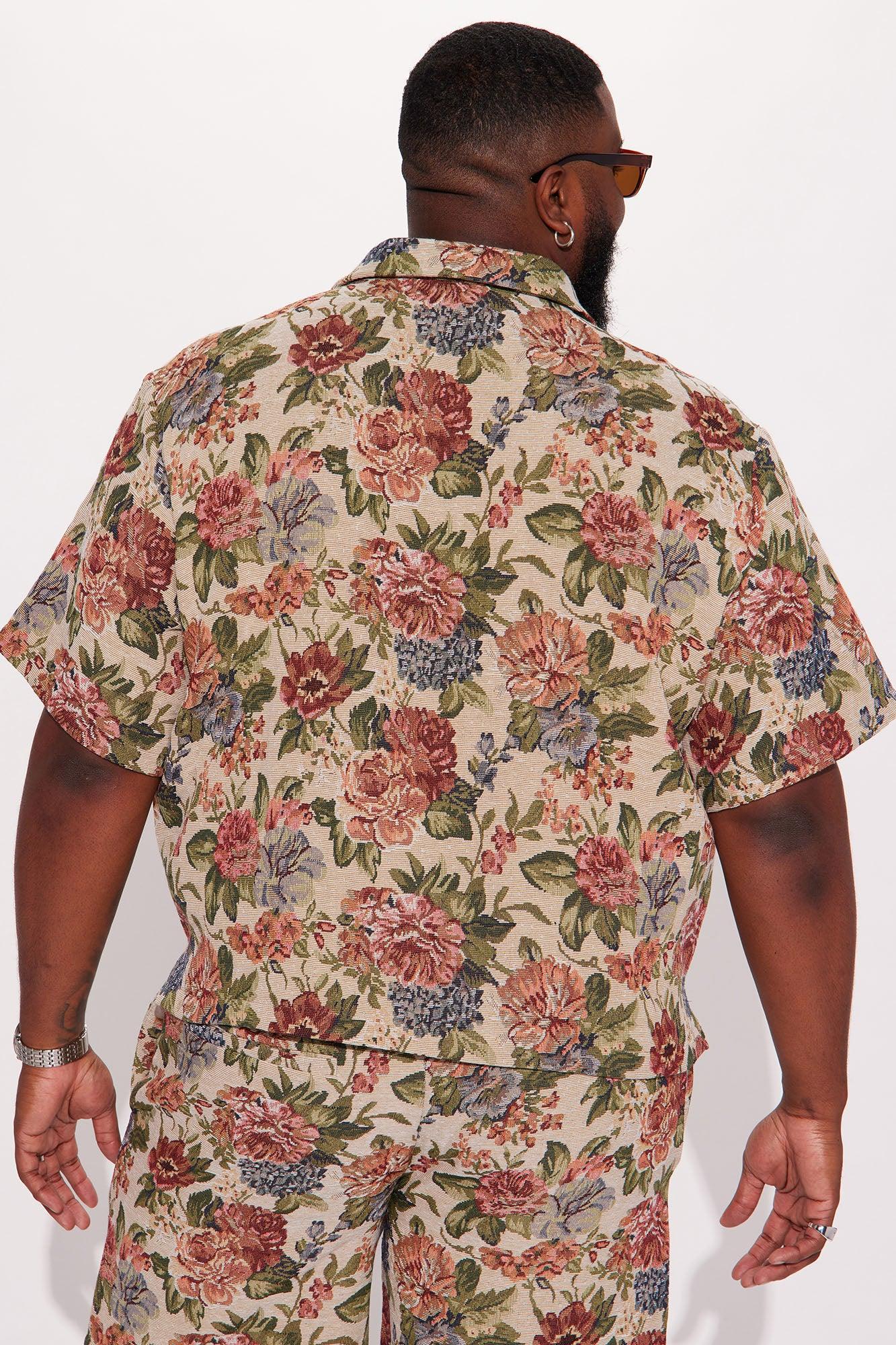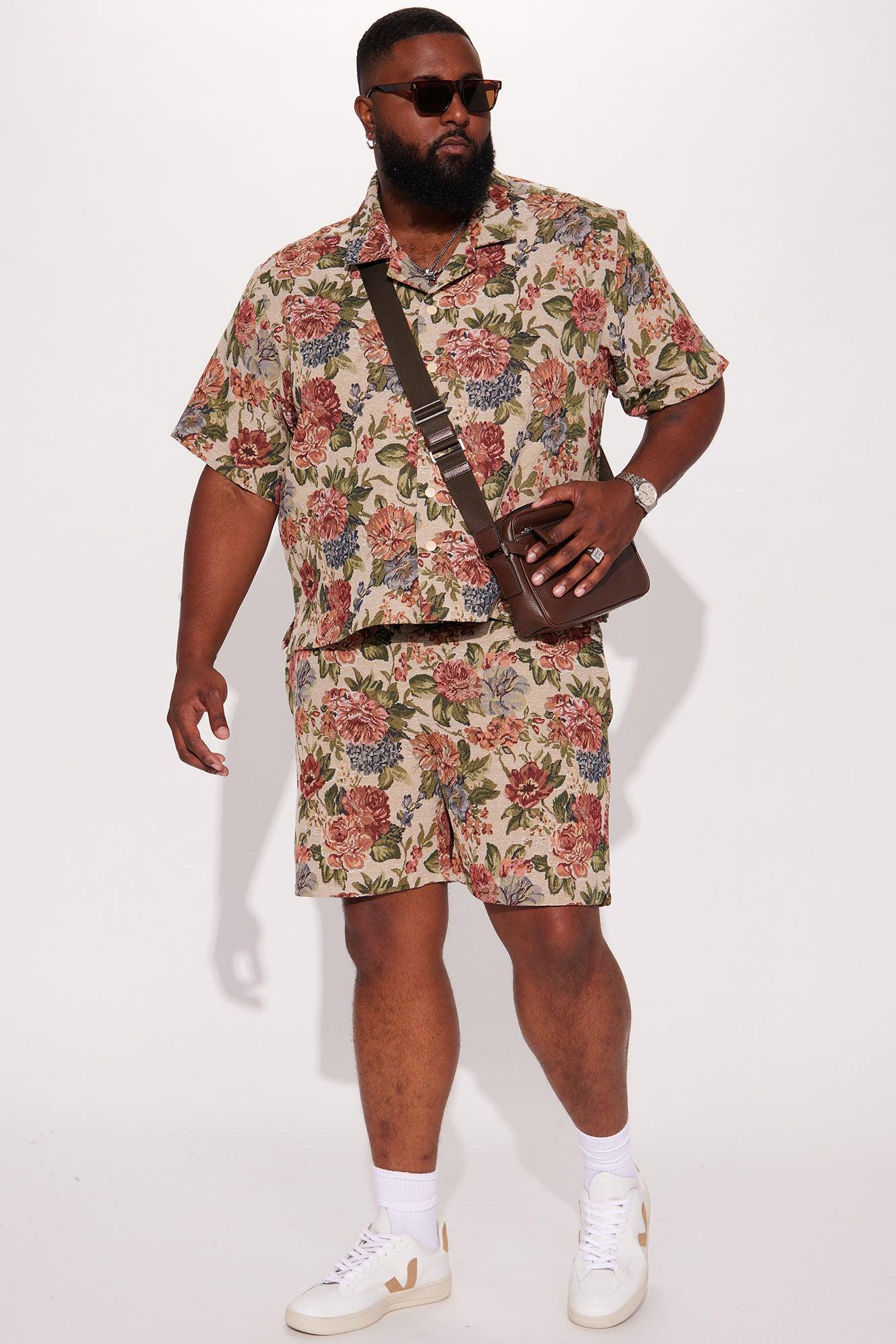 Model Height: 6'4 - Wearing Large Big & Tall: Height 6'5 - Wearing XXXL Available In Multi Color. Fold Down Collar Front Button Closure Short Sleeve Pair With "Flowers Blooming Tapestry Shorts " Disclaimer: Print Placement May Vary 80% Polyester 20% Rayon Imported