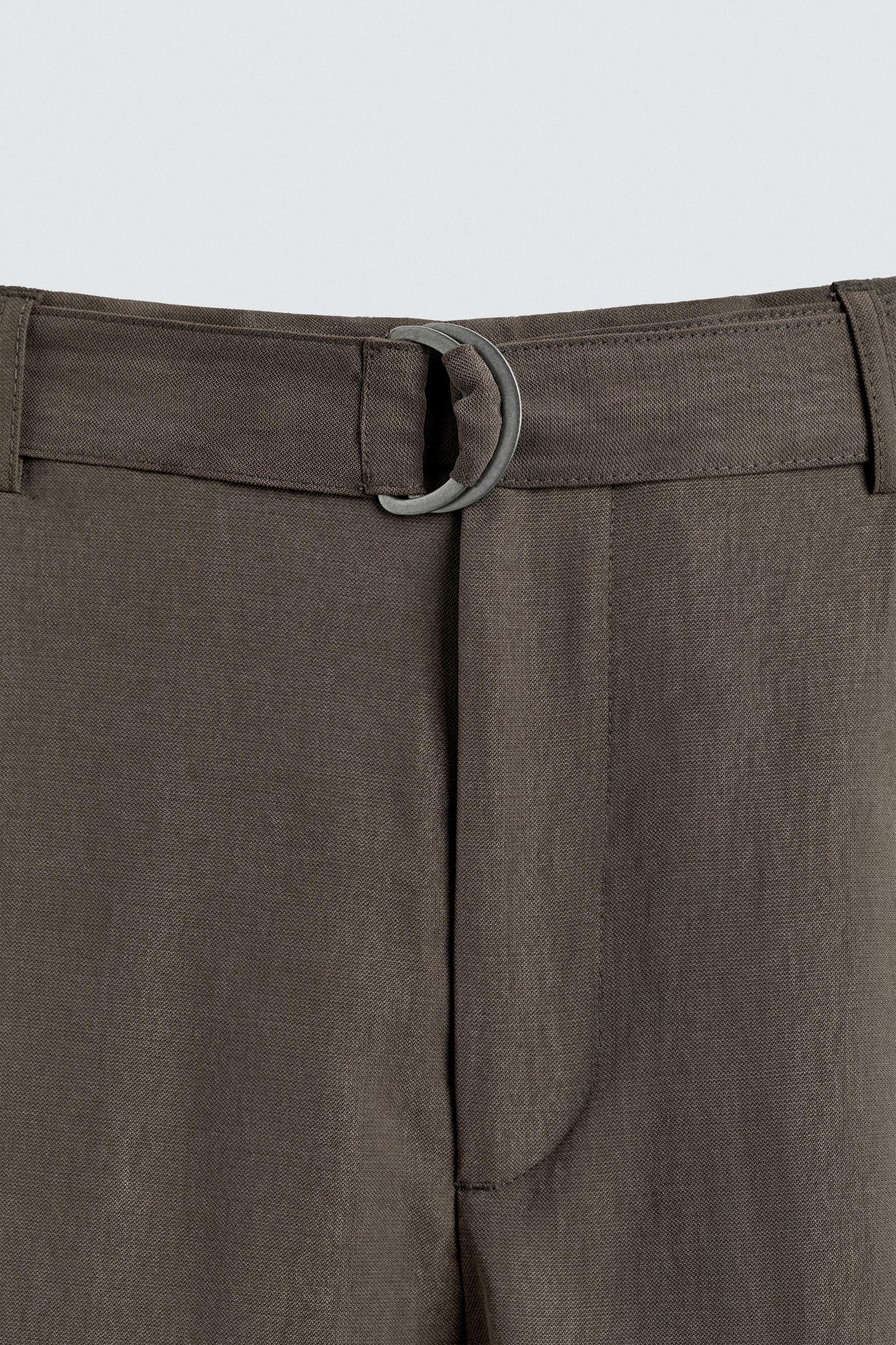 Louis - Relaxed Fit Textured Belted Tailored Trousers - Brown Male