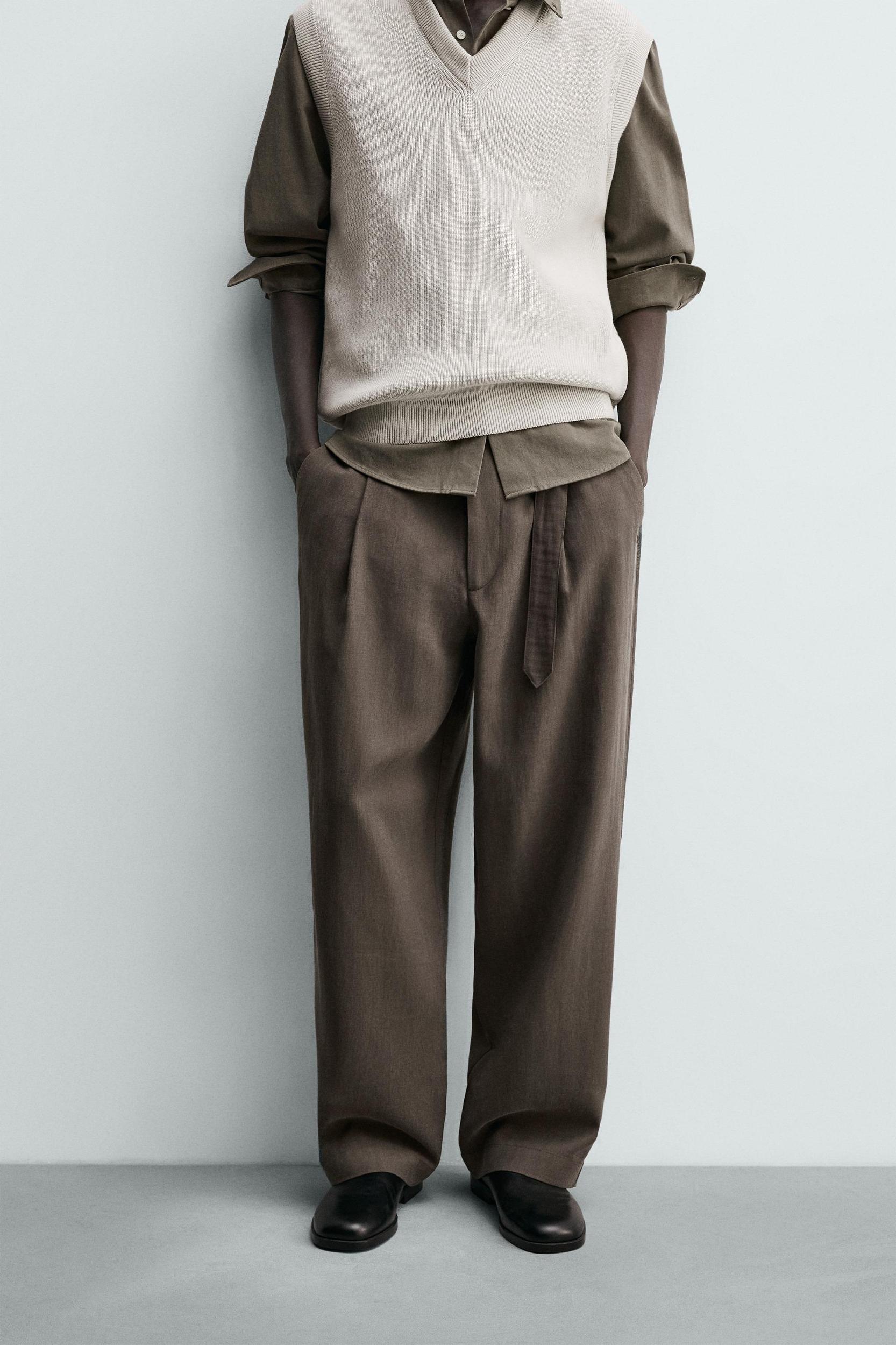 Flowing linen blend trousers with darts
