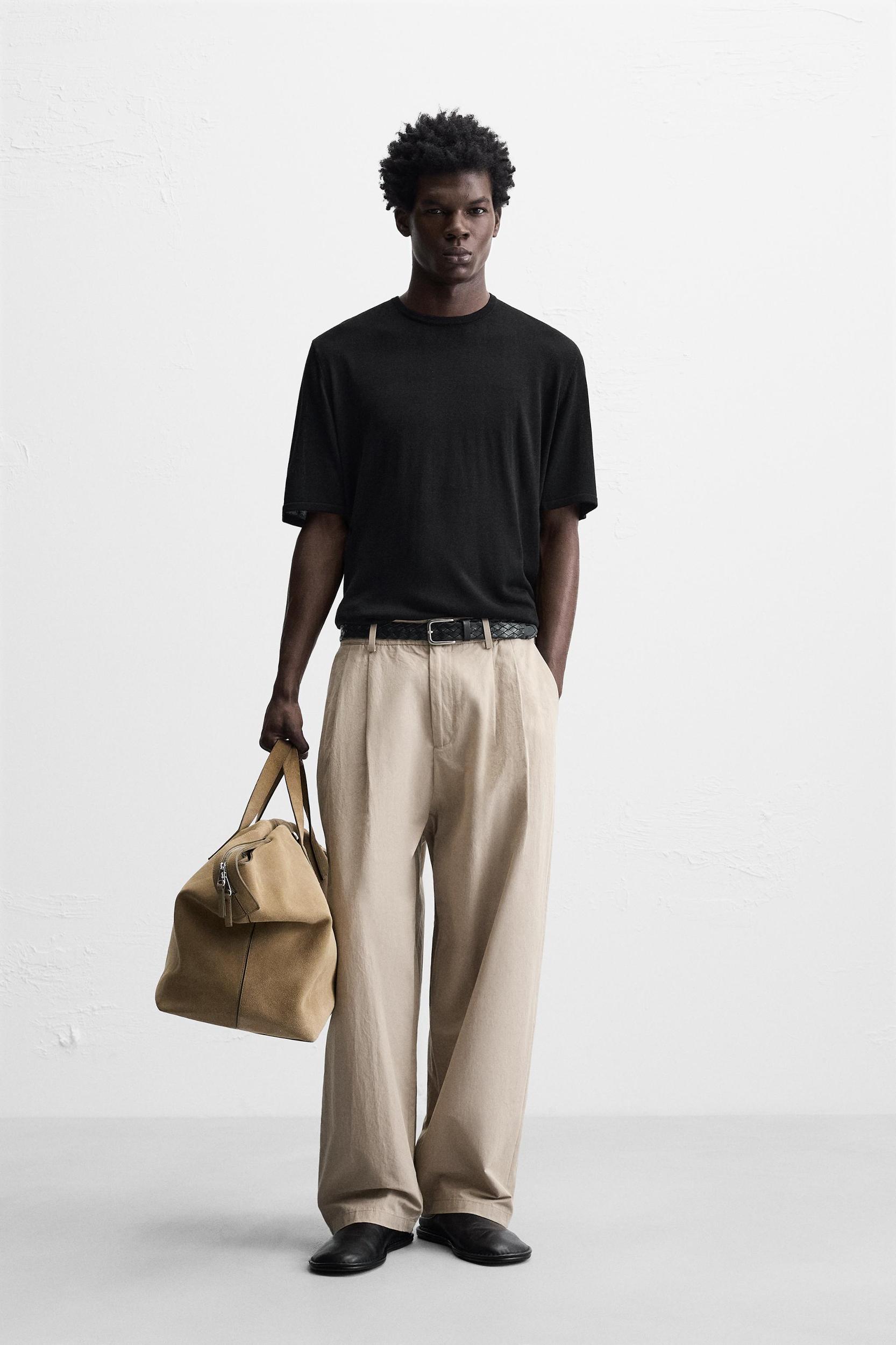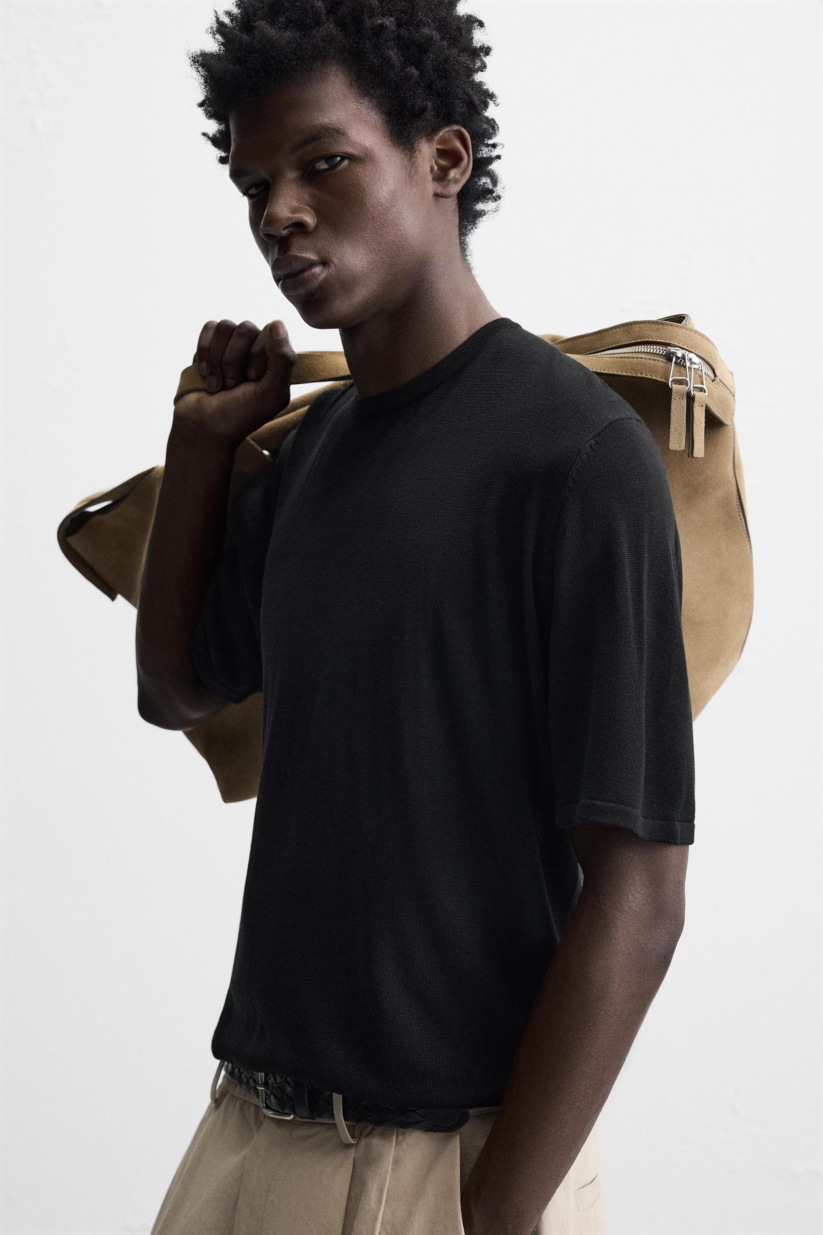 Regular fit knit T-shirt woven in viscose blend yarn. Crew neck and short sleeves. Ribbed trim.