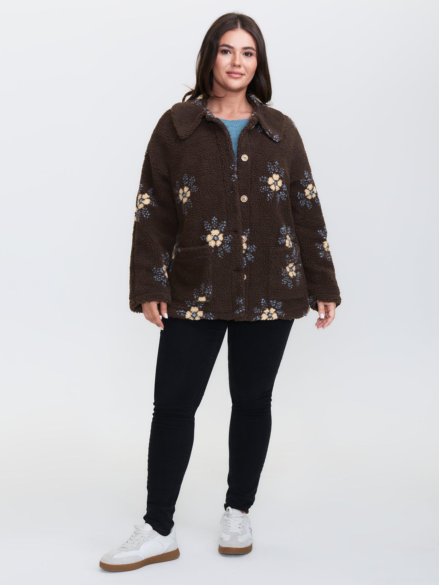 Shop Fluffy Floral Pattern Pocket Coat now and redefine your style with confidence at BloomChic. Tailored for mid and plus-size women. This trendy Outerwear Women, sizes 10-30. Color:Multicolor;Style:Leisure;Prints:Synthetic texture;Details:Button;Pocket:Patch pocket;Belt:No-belt;Closure Type:Button;Lining:Lining