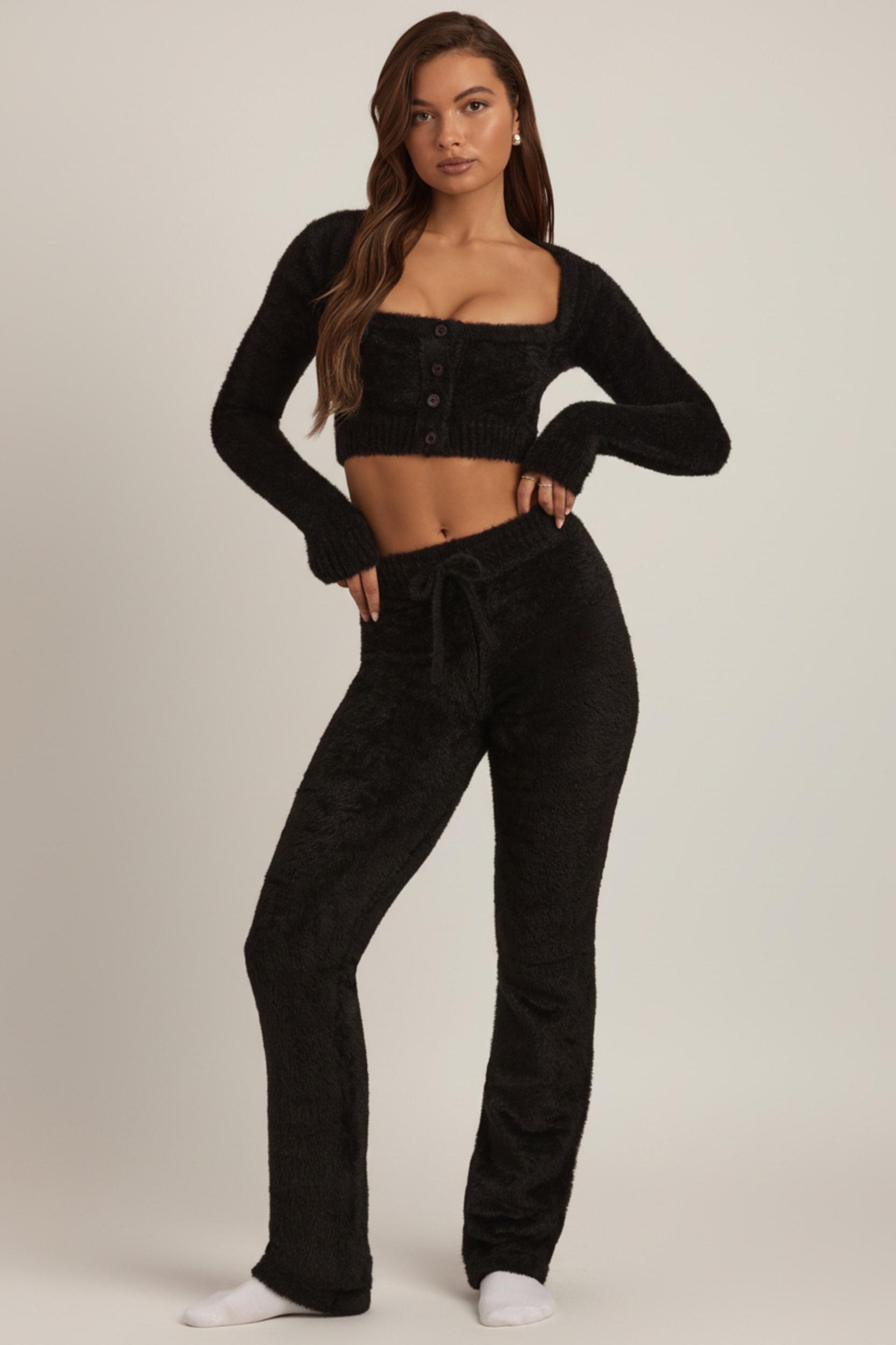 Fluffy Knit Wide-Leg Trousers in Black Product Image