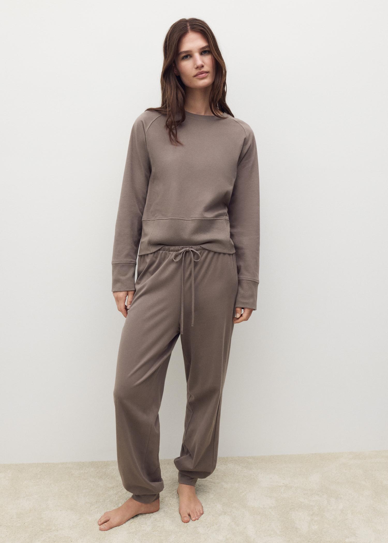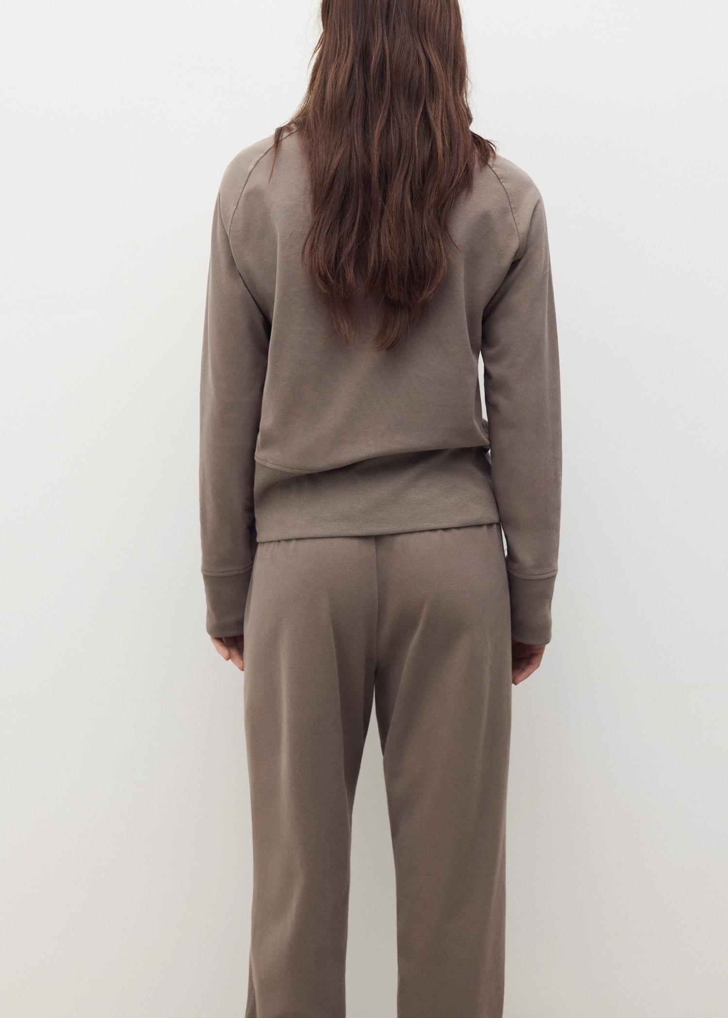 100% frosted cotton fabric. The frosted cotton adds softness and an elegant finish to the pants, enhancing comfort and aesthetics. Round neckline. Straight design. Ribbed cuffs and hem. Pleasant texture. Available in Various Colors. Matches with more products from the collection