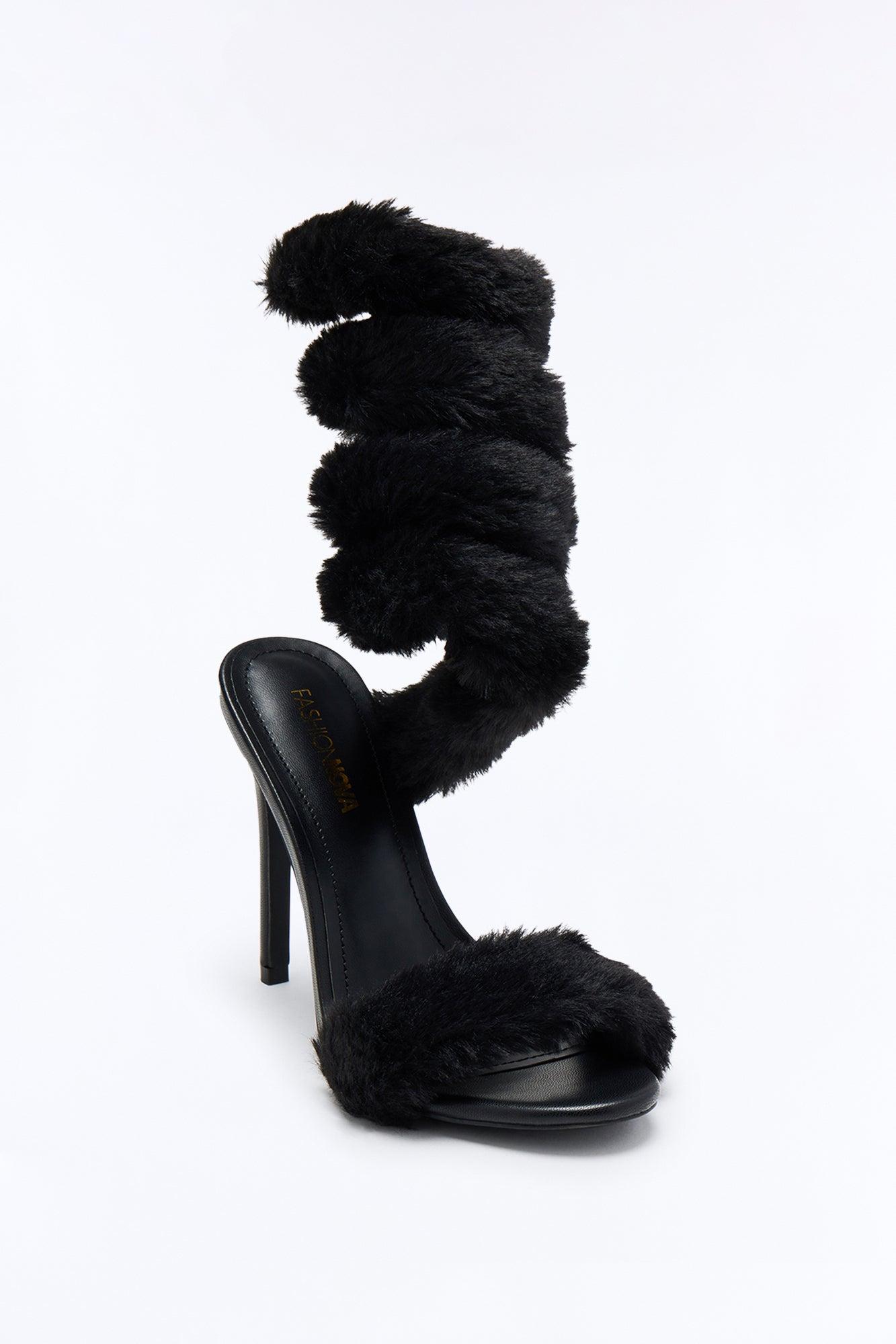 Flurry Faux Fur Wrap Up Heels - Black Female