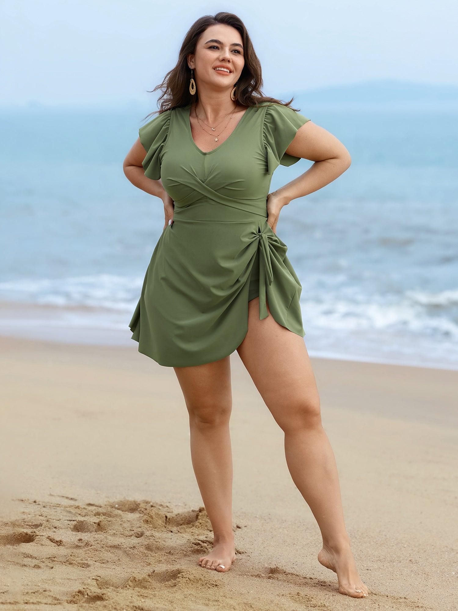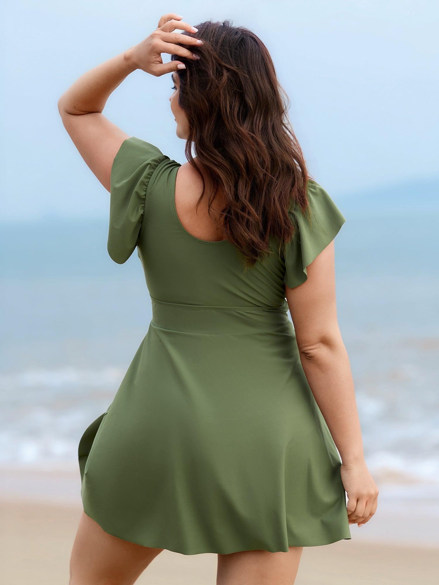 Shop Flutter Sleeve Twist Front Button Swim Dress now and redefine your style with confidence at BloomChic. Tailored for mid and plus-size women. This trendy Swimwear Women, sizes 10-30. Color:Sage;Style:Resort;Cup Type:Removable cups;Functional Fabric:Chlorine Resistant;Neckline:V-neck;Sleeve Type:Ruffle Sleeve;Prints:Non;Details:Ruffles, Twist, Tie knot;Pocket:No-pocket;Belt:No-belt;Chest pad:Removable Padding;Lining:Lining;Closure Type:Non;Structural function:Cinched & Flared;One-piece or split swim dresses:Includes bikini bottoms;Swimsuit types:Bikini Shorts Dress Set
