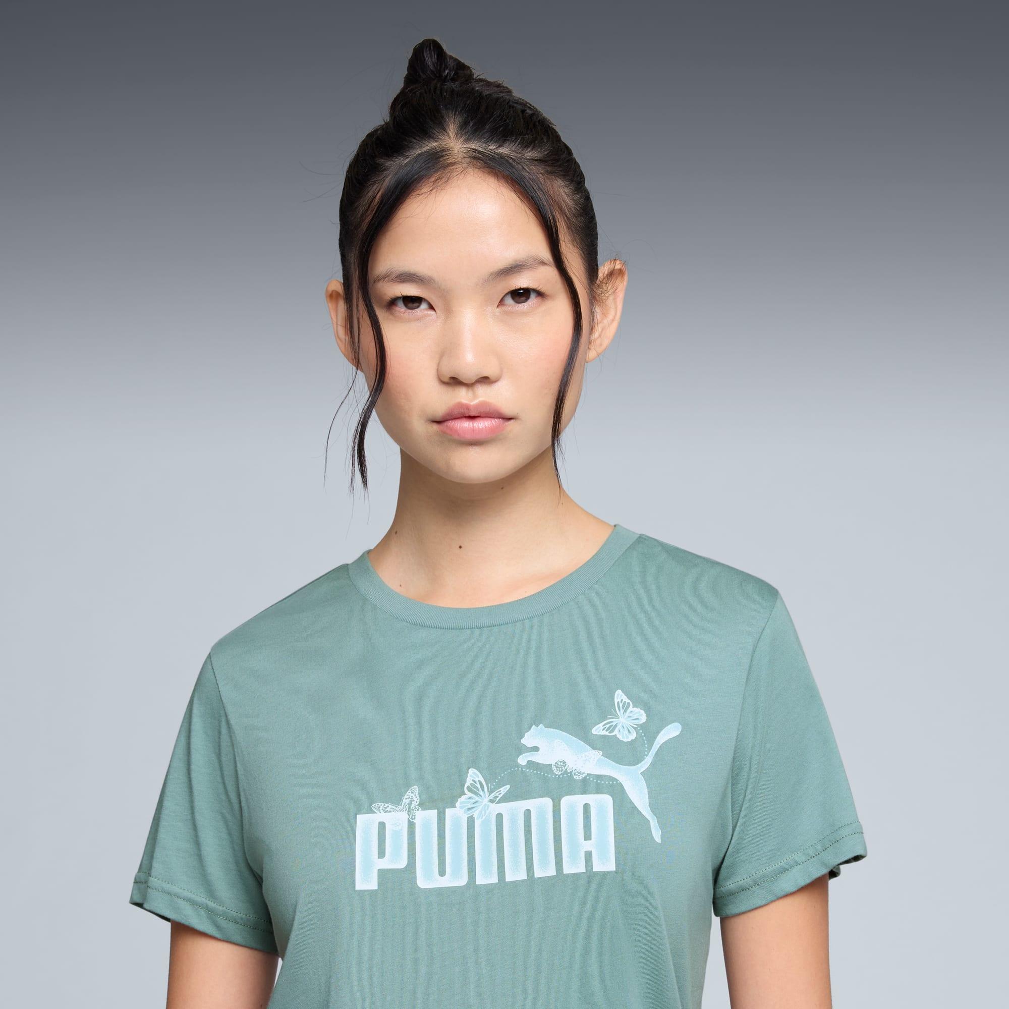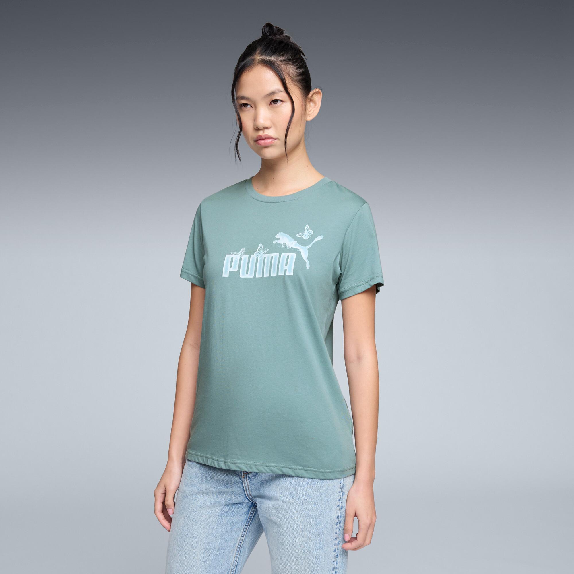 Bring A Cool Boost To Your Wardrobe With This Cozy Cotton Tee, Showcasing Butterfly Graphics For Extra Chill Vibes. This Tee's Comfort Fit Makes It The Perfect Choice For A Laid-Back Day. Features & Benefits Made With At Least 20% Recycled Cotton Details 70% Cotton, 30% Recycled Cottoncomfort Fitshort Sleevescrew Neckpuma Branding Details | | PUMA Flutter Women's T-Shirt in Green, Size XL
