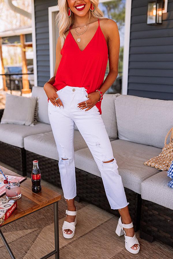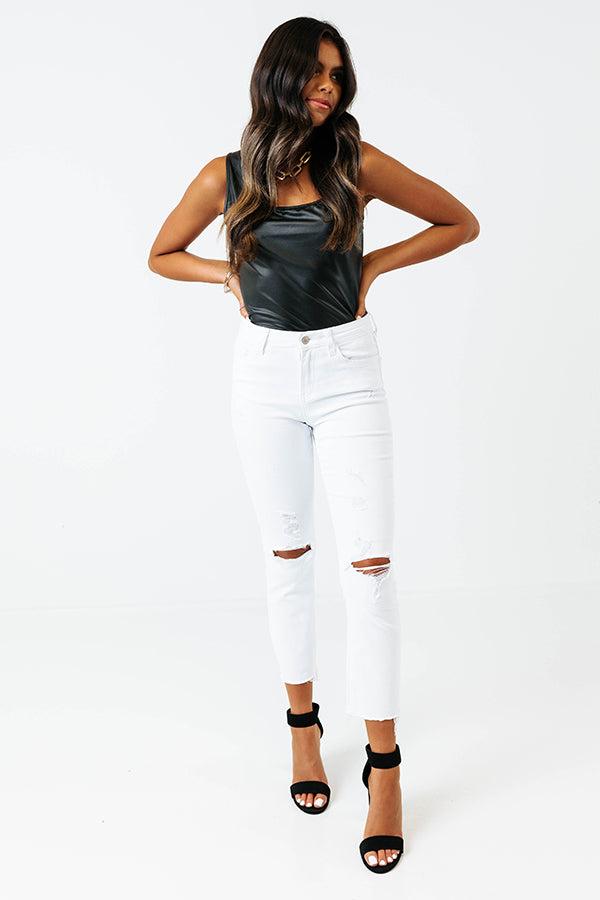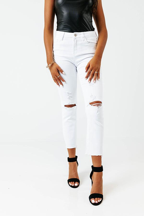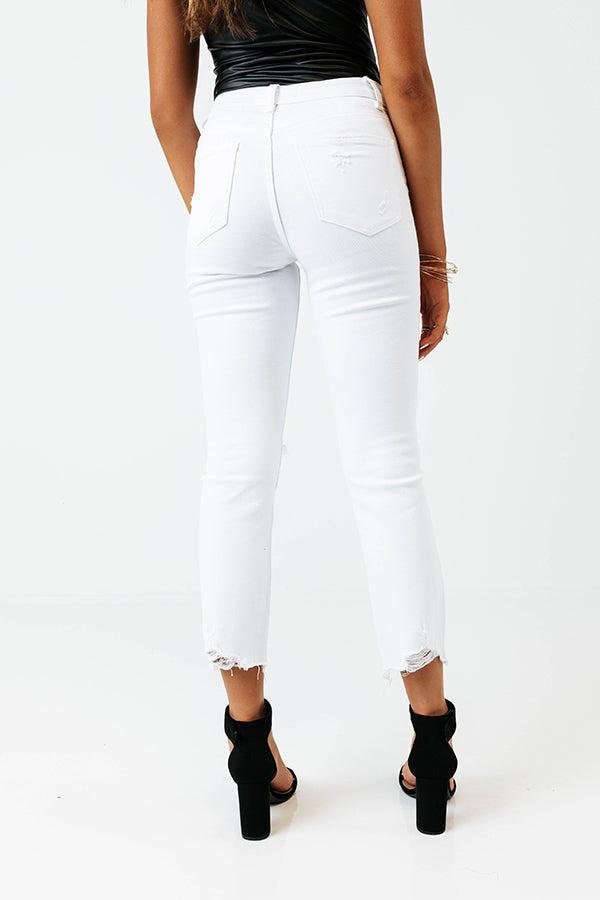 You won't find a more chic pair of denim than our white 'Gerry' skinny featuring lightweight material with distressed knee detailing, a high waistline with belt loops, a classic four-pocket cut, a hidden zip fly with a button closure, and a flattering figure hugging silhouette that ends in ankle-length hemlines! Measurements 24 : Front Rise 9", Hip 28", Inseam 25", Length 34", Waist 24". 25 : Front Rise 9.5", Hip 29", Inseam 25", Length 34.5", Waist 25". 26 : Front Rise 9.5", Hip 30", Inseam 25", Length 34.5", Waist 26". 27 : Front Rise 10", Hip 31", Inseam 25", Length 34.5", Waist 27". 28 : Front Rise 10", Hip 32", Inseam 25", Length 35", Waist 28". 29 : Front Rise 10", Hip 33", Inseam 25.5", Length 35", Waist 29". 30 : Front Rise 10.5", Hip 34", Inseam 25", Length 36", Waist 30". 31 : Front Rise 11", Hip 35", Inseam 25", Length 36", Waist 31". 32 : Front Rise 11", Hip 36", Inseam 25.5", Length 36", Waist 32".