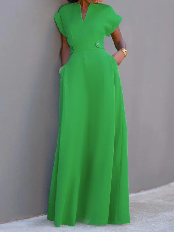 Flying Sleeves Solid Color Split-Joint V-Neck Evening Dresses Maxi Dresses