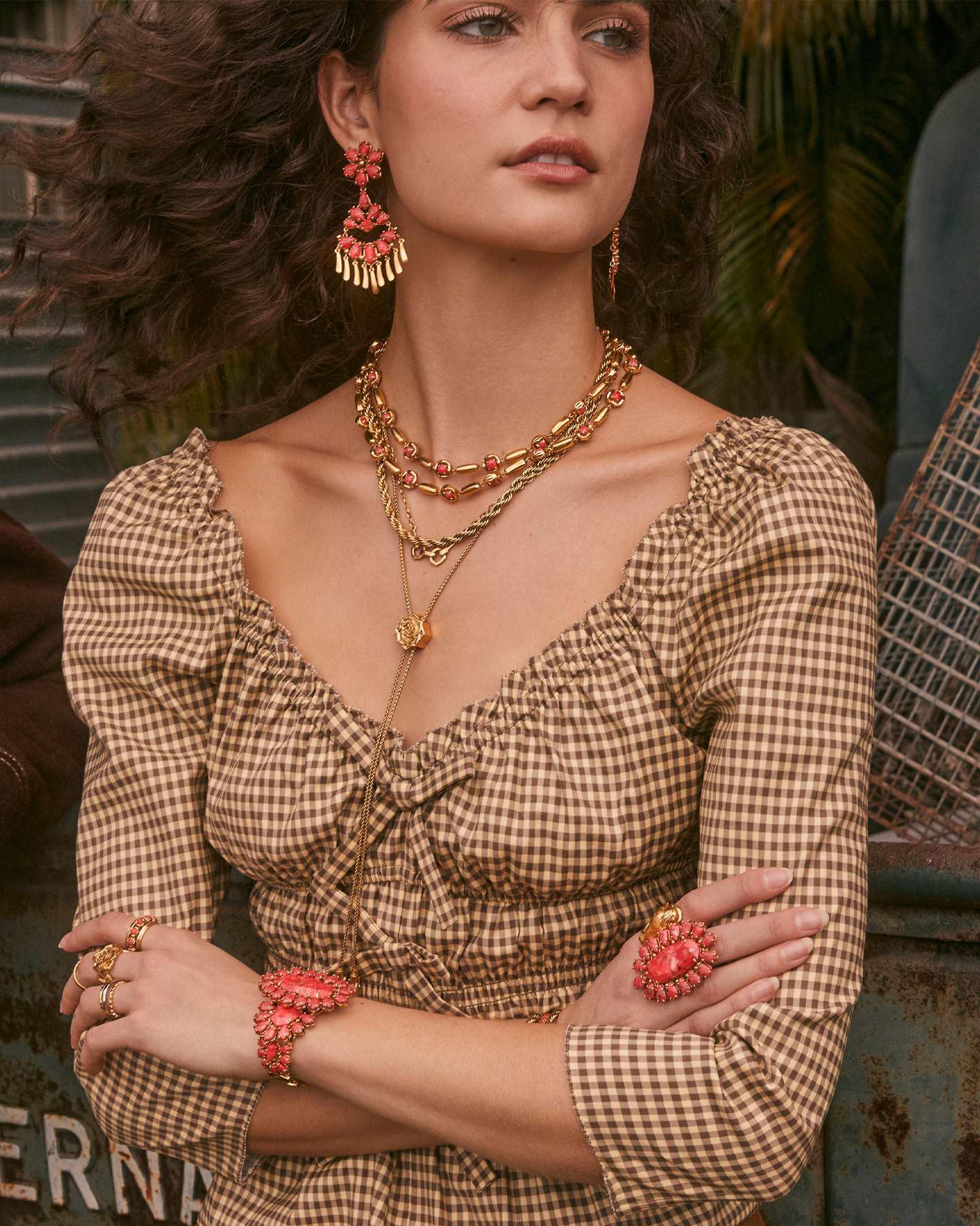 Flynn Vintage Gold Statement Earrings in Bronze Veined Red Magnesite