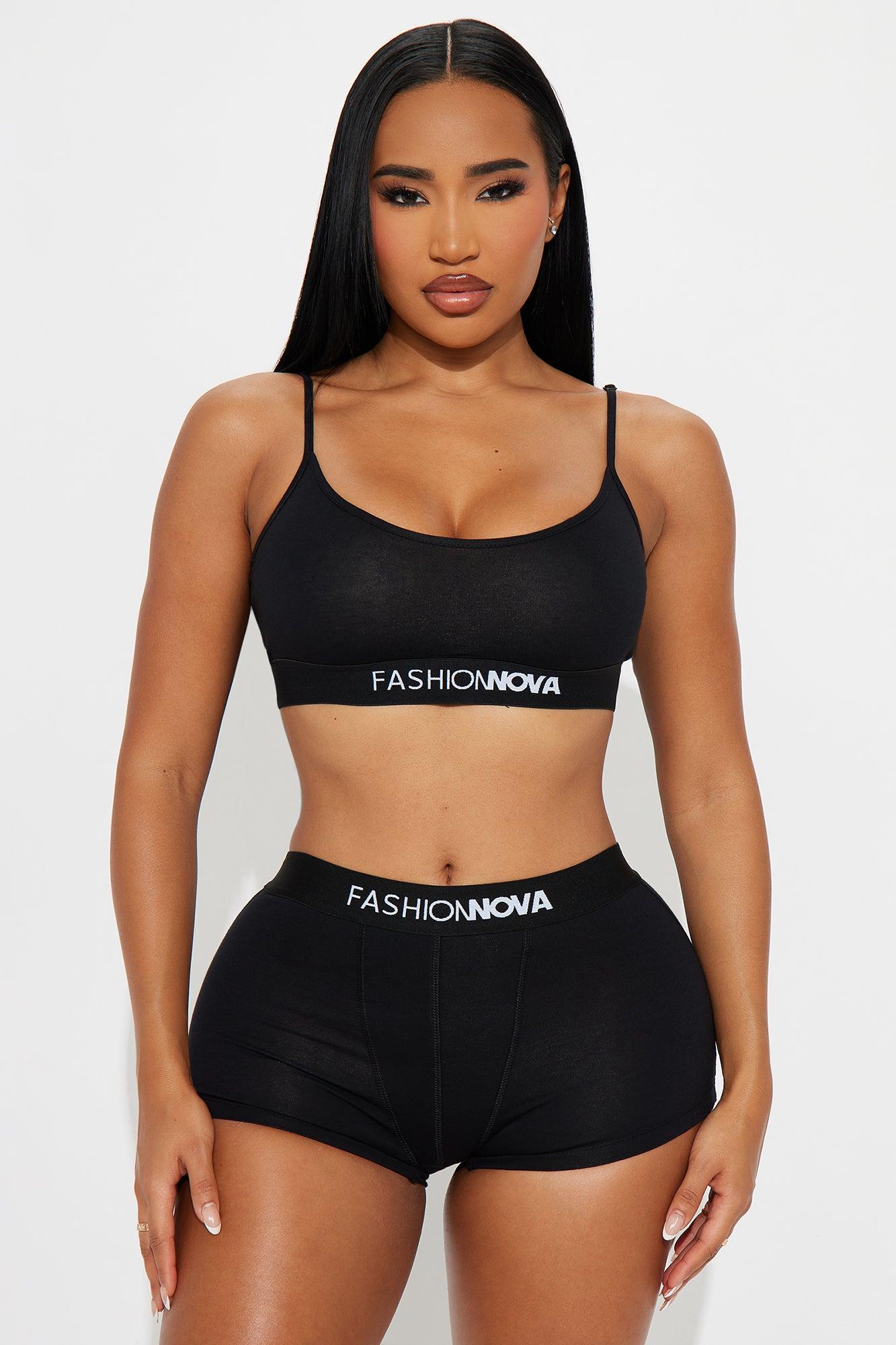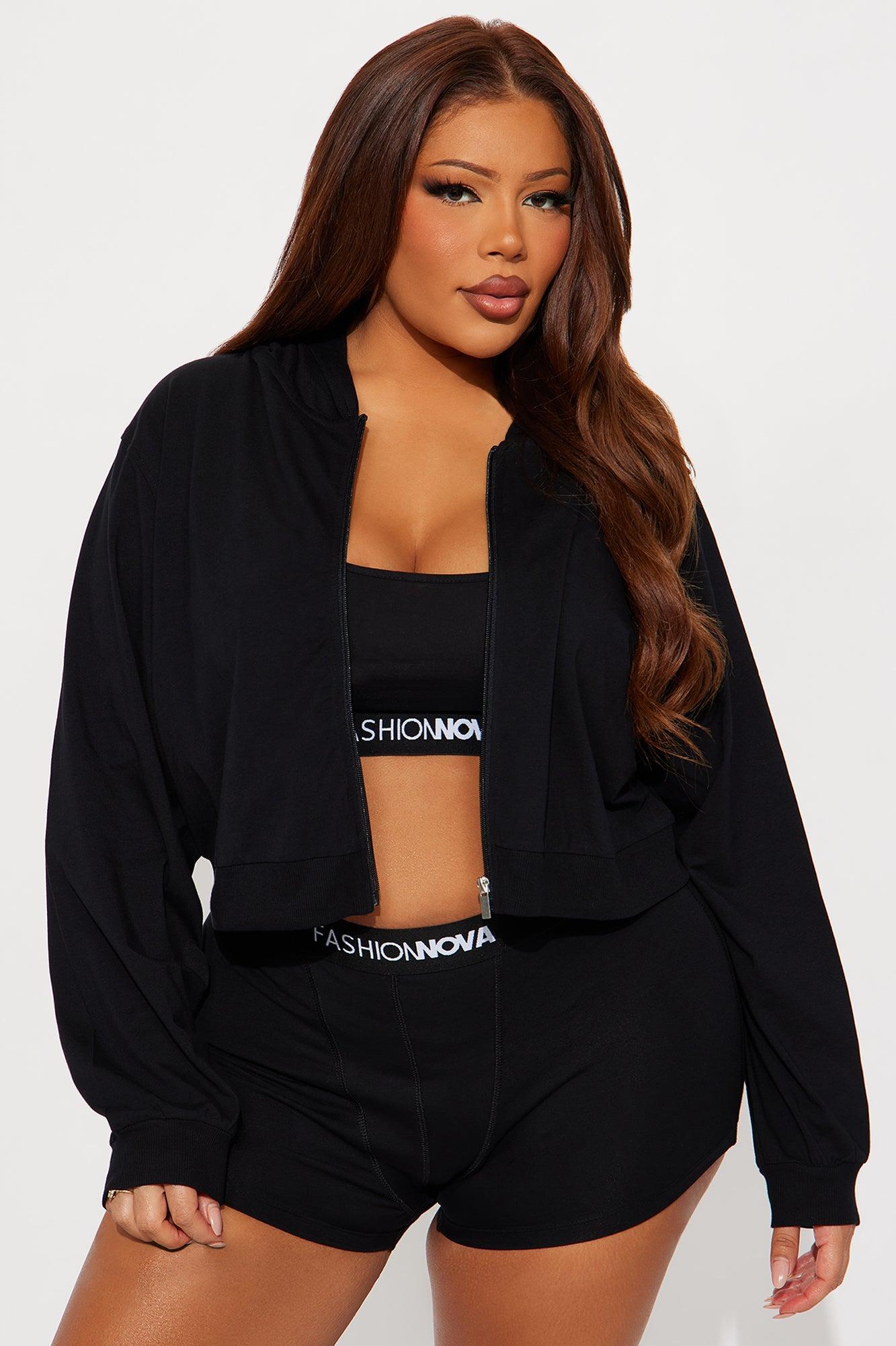 FN Mood Cami And Boxer Zip Up Hoodie 3 Piece Set - Black Female