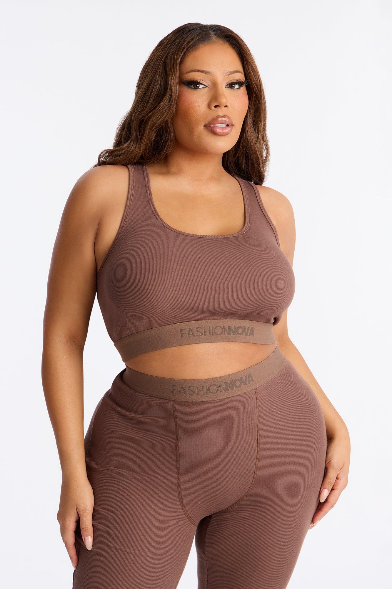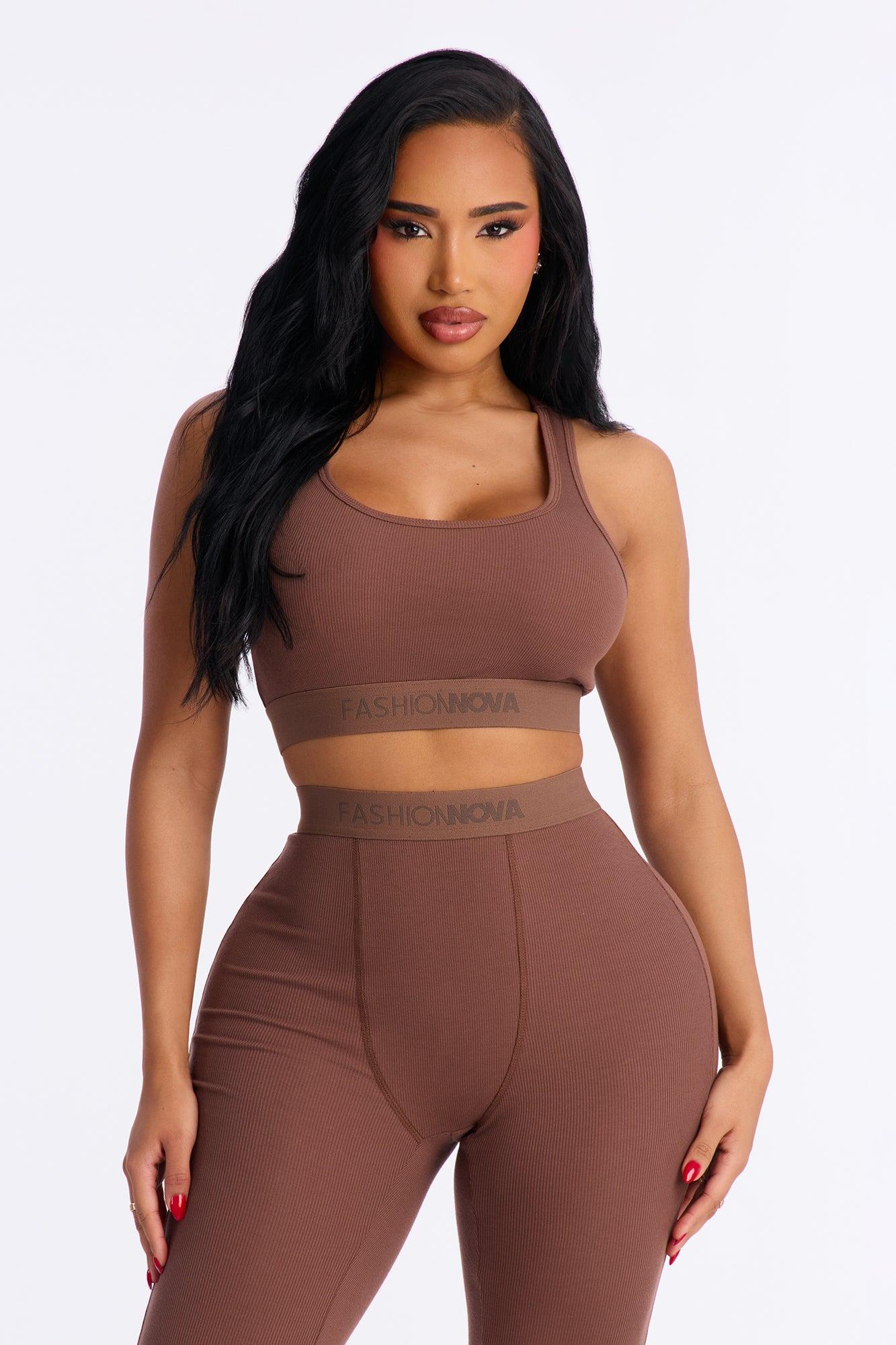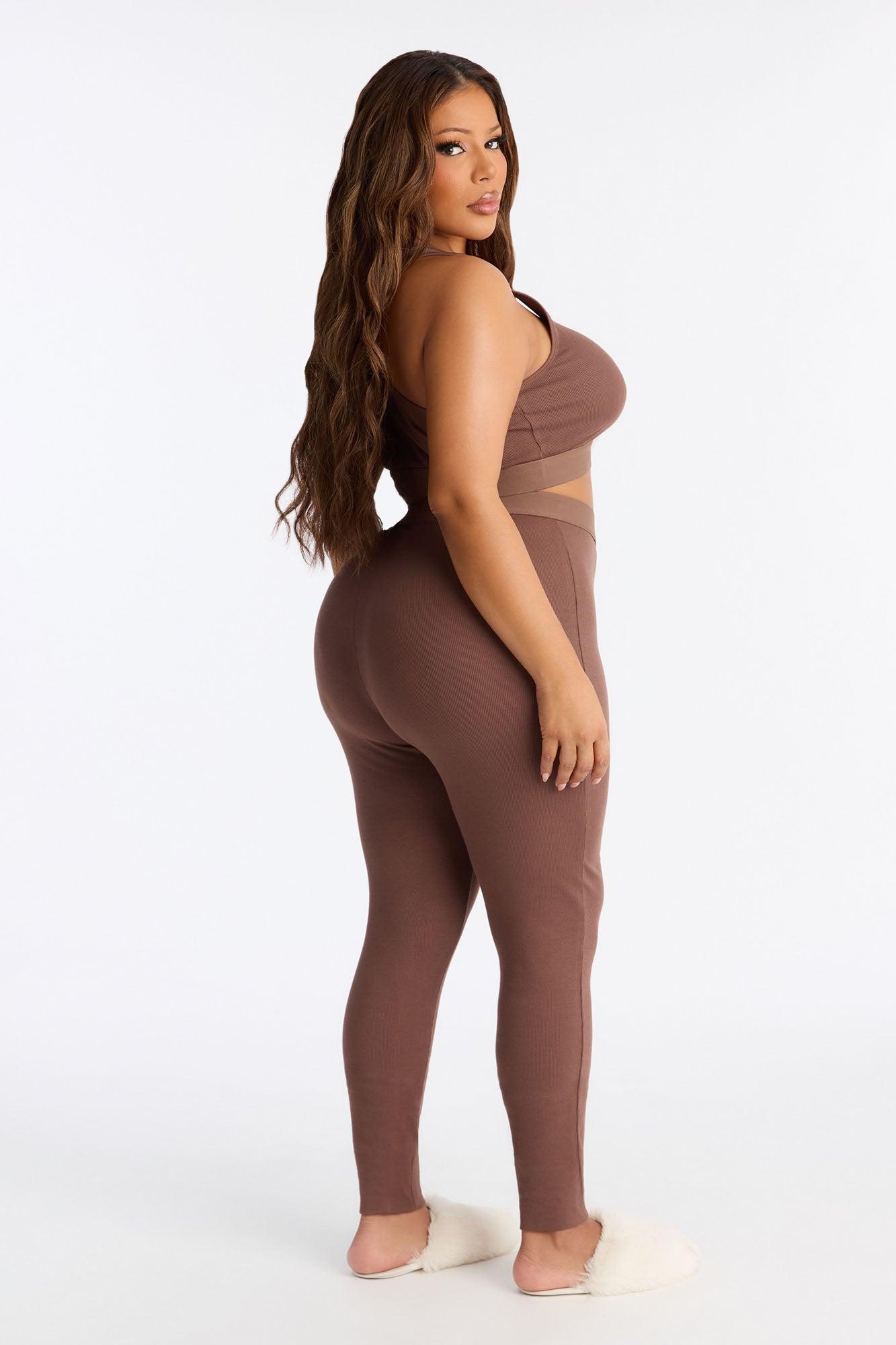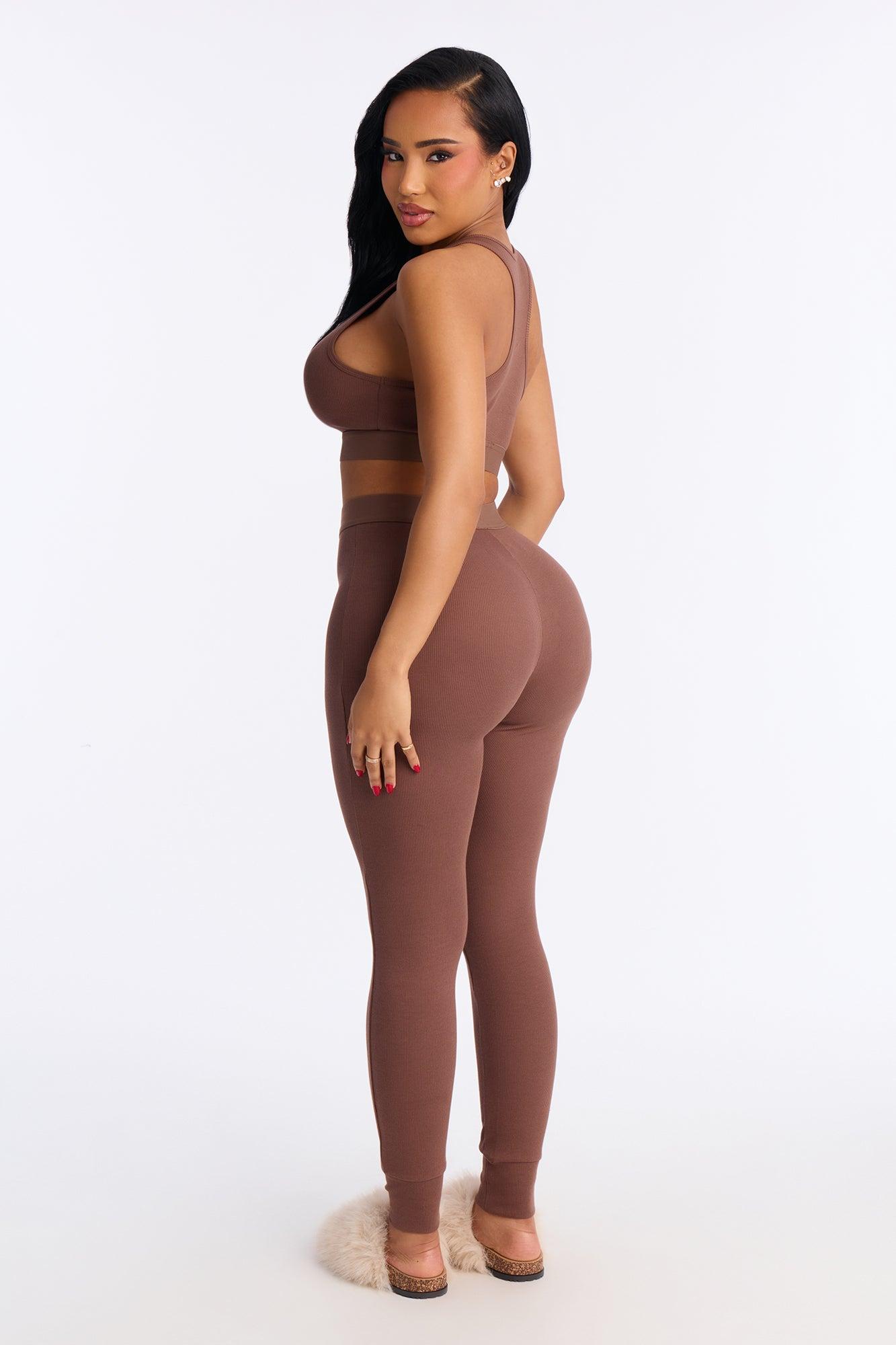 FN Mood Racerback Bra And Legging 2 Piece Ribbed Cotton Set - Chocolate Female