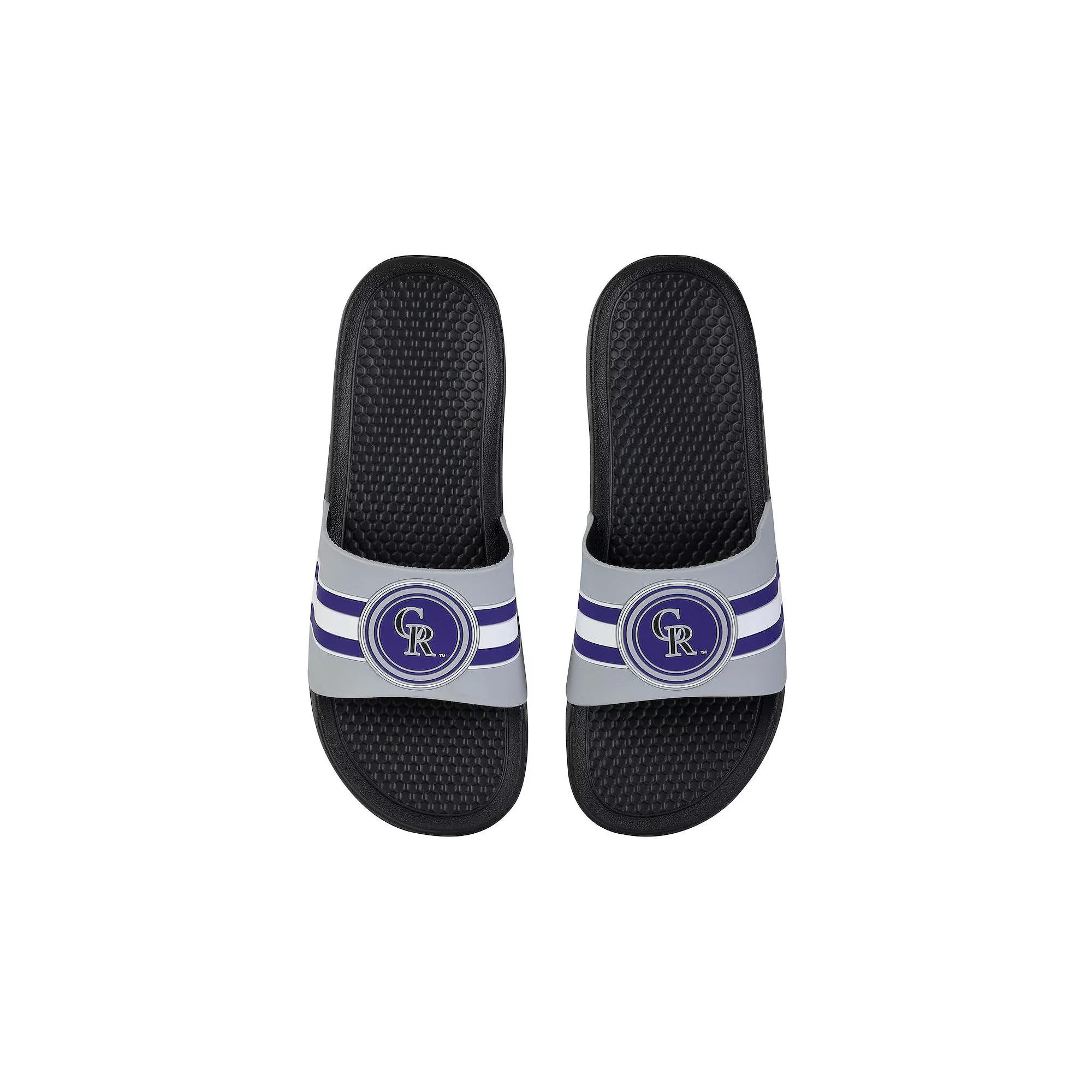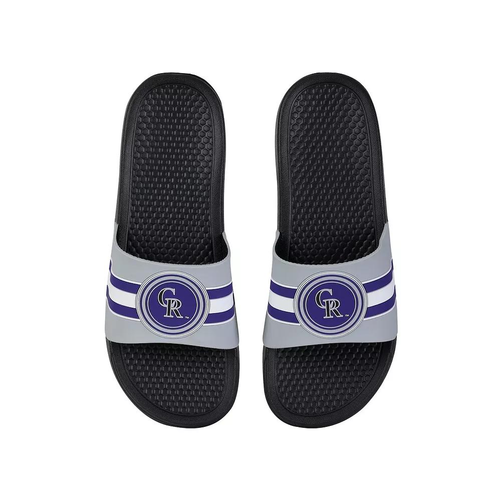 Keep your feet cool in hot weather by wearing these Colorado Rockies Stripe Raised slide sandals from FOCO. They feature vivid Colorado Rockies graphics, and the slip-on style makes them easy to use. The textured soles also help prevent you from slipping.Keep your feet cool in hot weather by wearing these Colorado Rockies Stripe Raised slide sandals from FOCO. They feature vivid Colorado Rockies graphics, and the slip-on style makes them easy to use. The textured soles also help prevent you from slipping.Brand: FOCOOfficially licensedTextured outsole for tractionSurface washableS fits shoe sizes 7/8; M fits shoe sizes 9/10; L fits sizes 11/12; XL fits sizes 13/14 (All sizes are Men's)ImportedRubberized graphics with embossed detailsSlip-on style with open toeMaterial: 100% PVC Upper; 80% EVA/20% Rubber LowerTextured footbed Size: 7-8. Color: Multicolor. Gender: male. Age Group: adult.