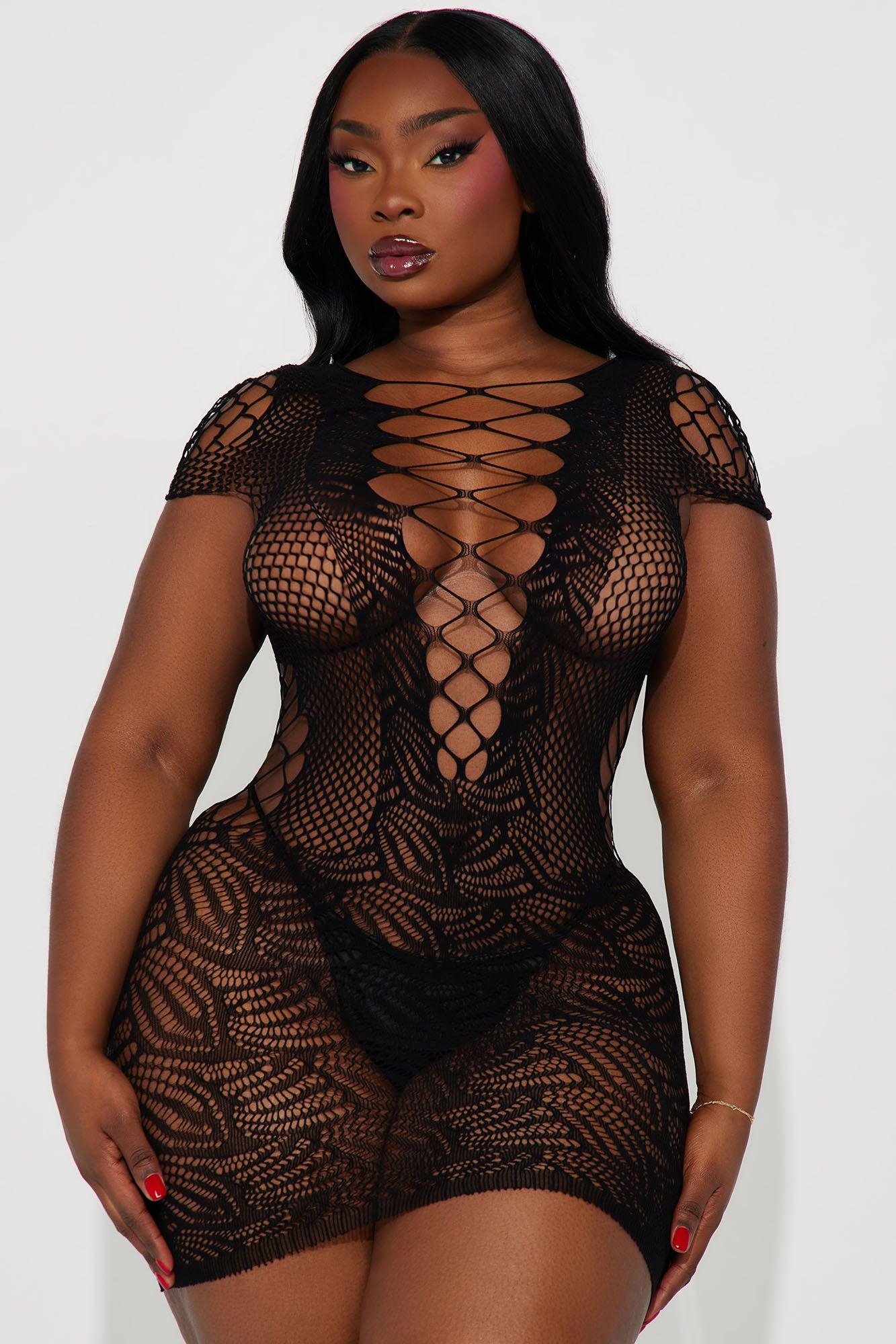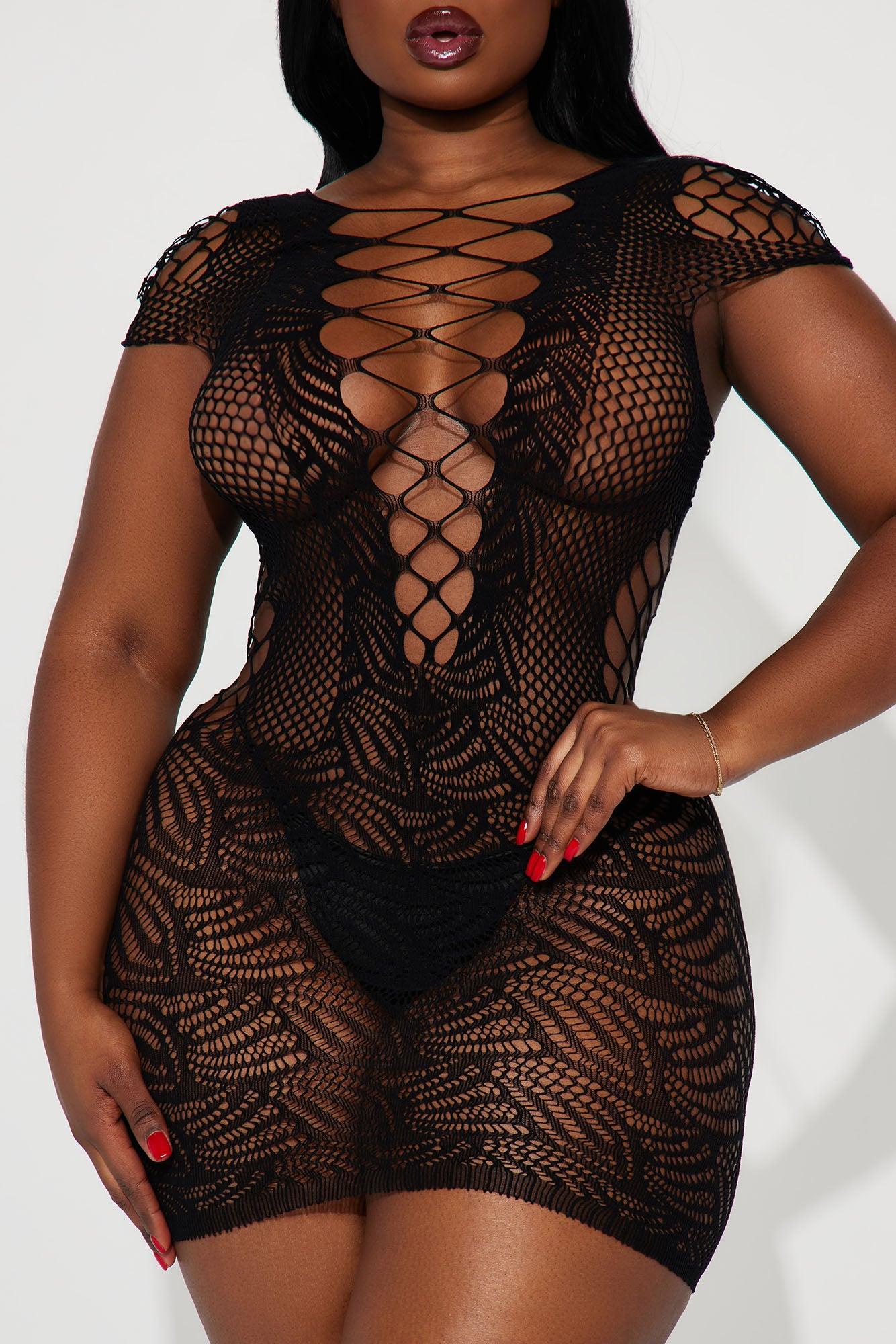 Focused On Love Strappy Dress Bodystocking - Black