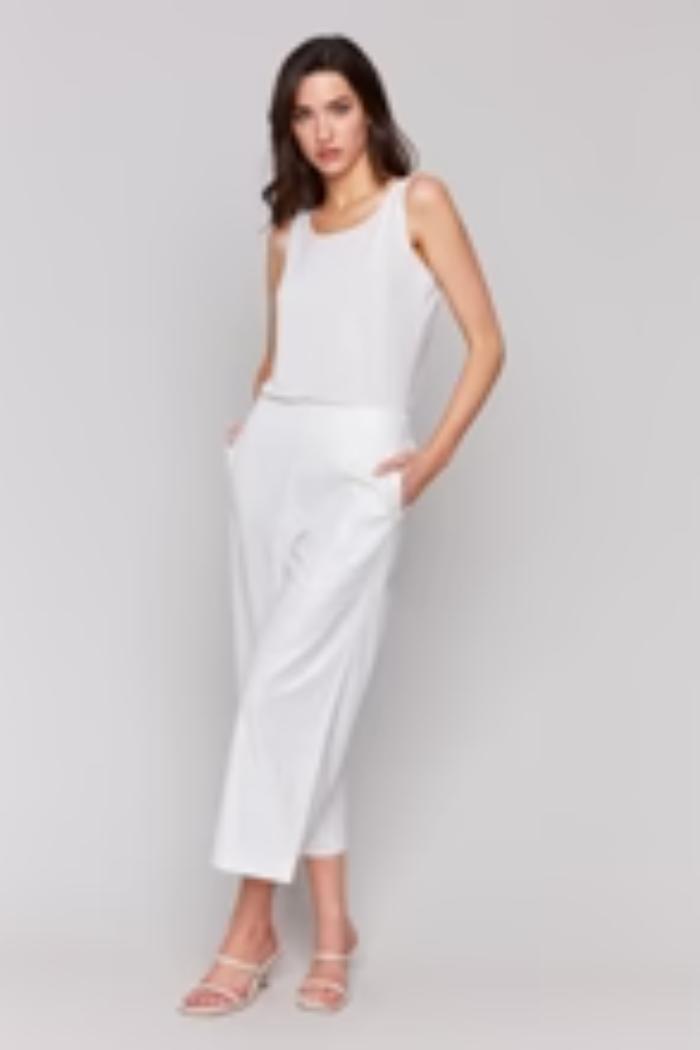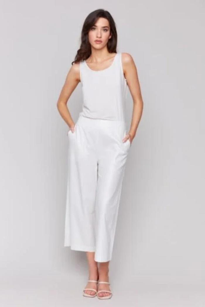 Foil Linen Blend Crop Pant - Champagne and Gold