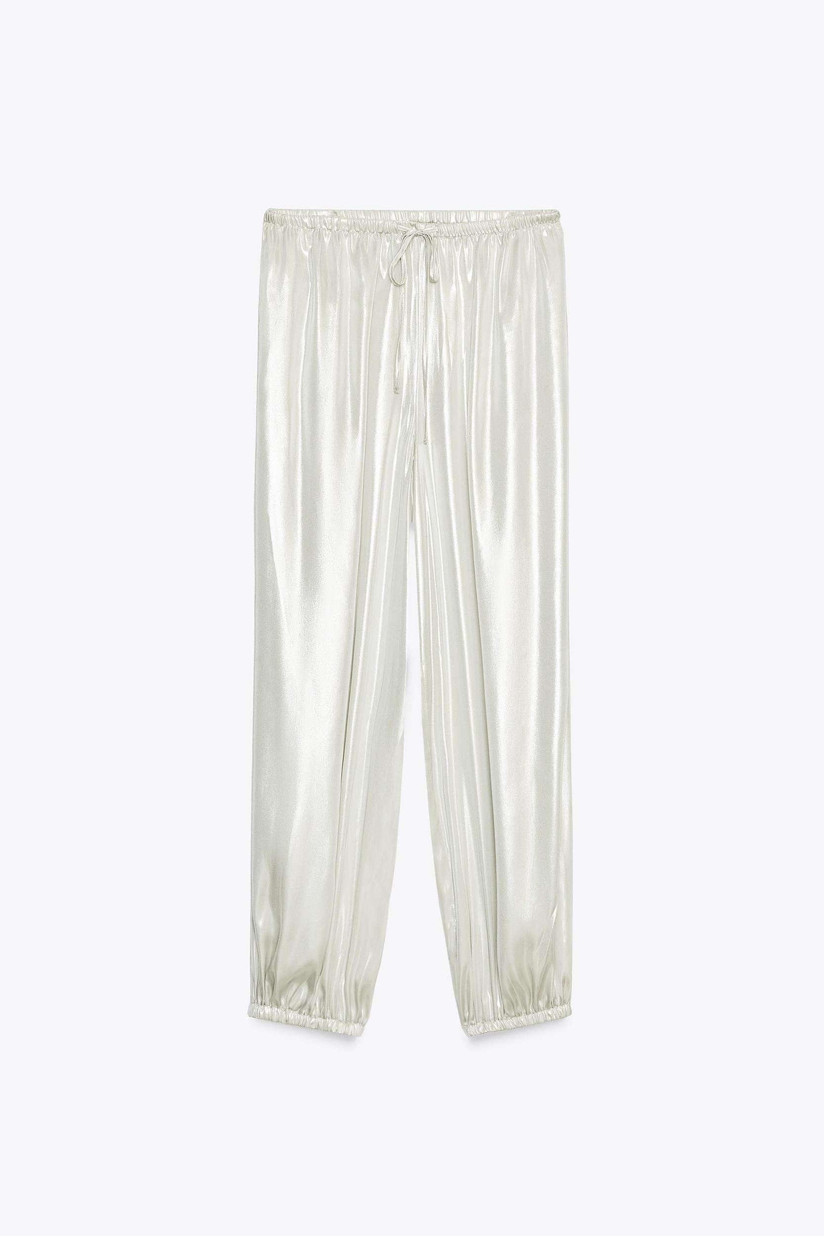Mid-rise pants with adjustable drawstring elastic waistband. Blouson hem with elastic cuffs.