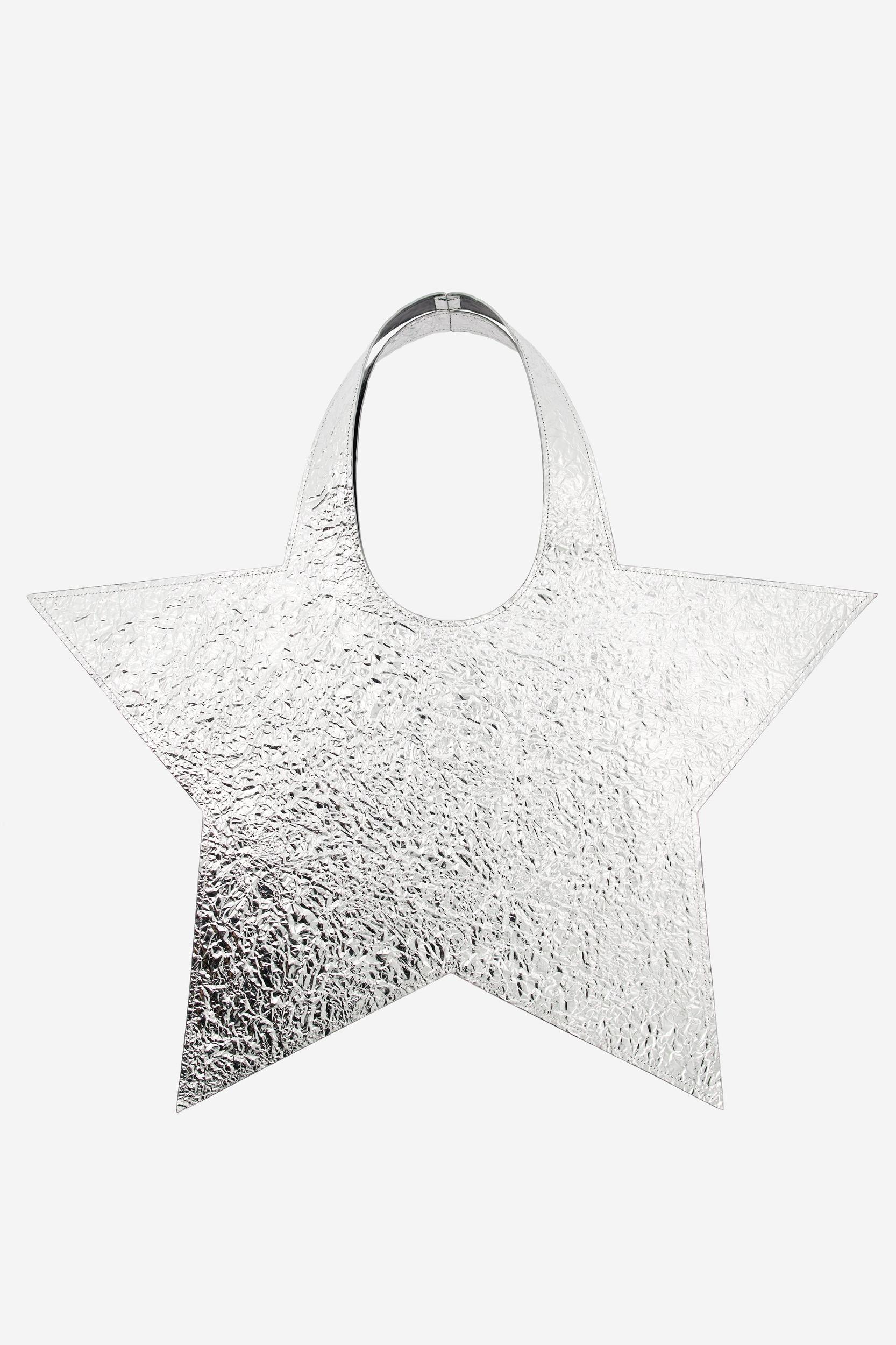 Like our signature heart-shaped tote, this new star version has a slimline silhouette that sits elegantly against the body. It is crafted from supple Italian leather in a bright and reflective silver tone. The bag has a streamlined shape that uses one of the star points as a comfortable sturdy handle that can be hand held or swung across the shoulder.