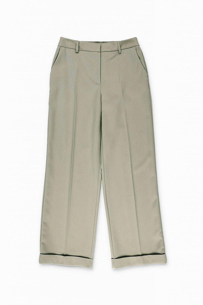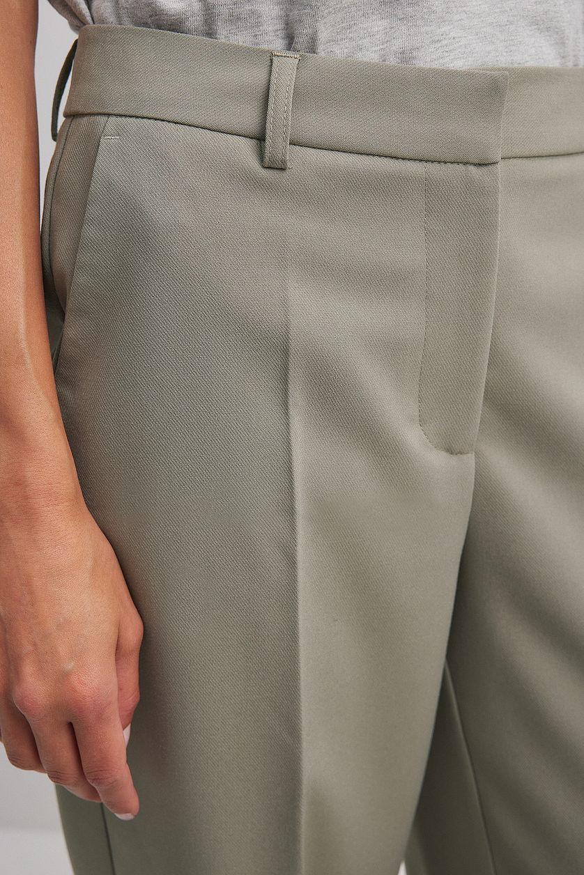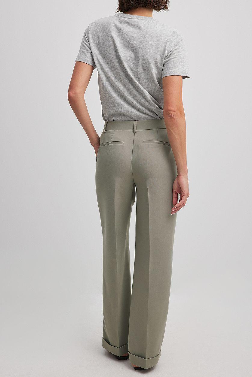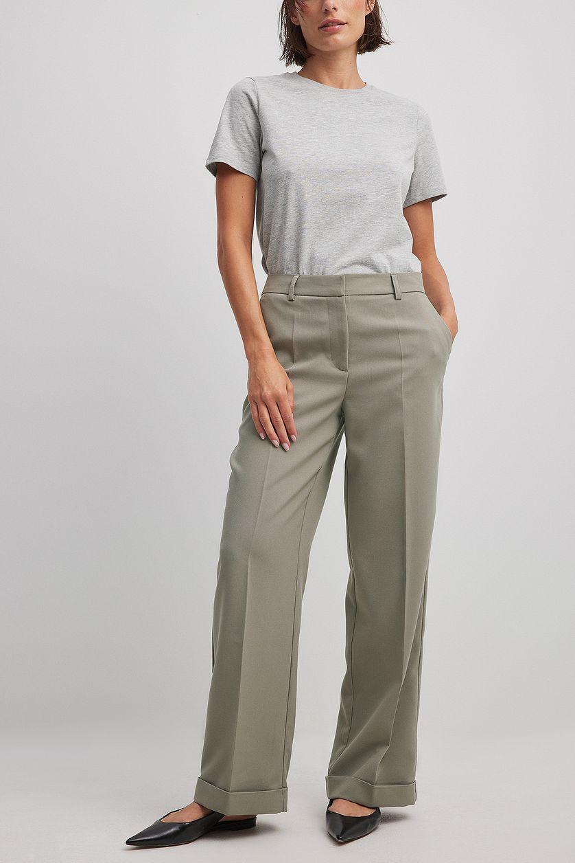 These pants are fold up and feature a mid waist with belt loops and a straight leg. They have side slant pockets and back mock pockets. Our pants feature a zipper, hook and button closure.