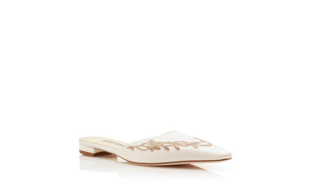FONTAZA White and Gold Satin Flat Mules