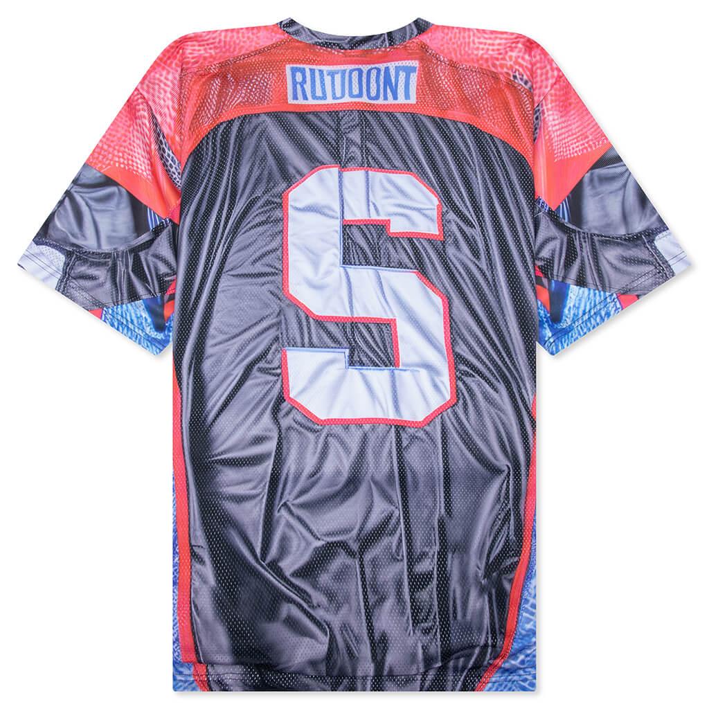 PDF Channel fuses athletic inspiration with conceptual design in the Football 19 Tee. Made in Italy, this performance-inspired silhouette is crafted from breathable mesh with a flexible nylon-elastane blend for a lightweight, technical feel. The all-over trompe l’oeil digital print adds edge, playing with perception through hyper-detailed visuals. A V-neckline, adjustable bottom hem, and custom patch detailing round out the look, offering a refined take on the classic football jersey. 86% Nylon/14% Elastane Made in Italy Digital print all-over Custom patch V-neckline Adjustable hem Style No: DFM54019TJ104PRINT