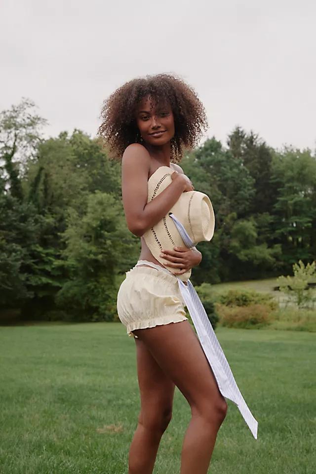Part of an exclusive collaboration between For Love & Lemons and Free People. Inspired by vintage bloomers and crafted in a butter yellow gingham, these micro shorts feature a full coverage back and are adorned with a center-front decorative bow.