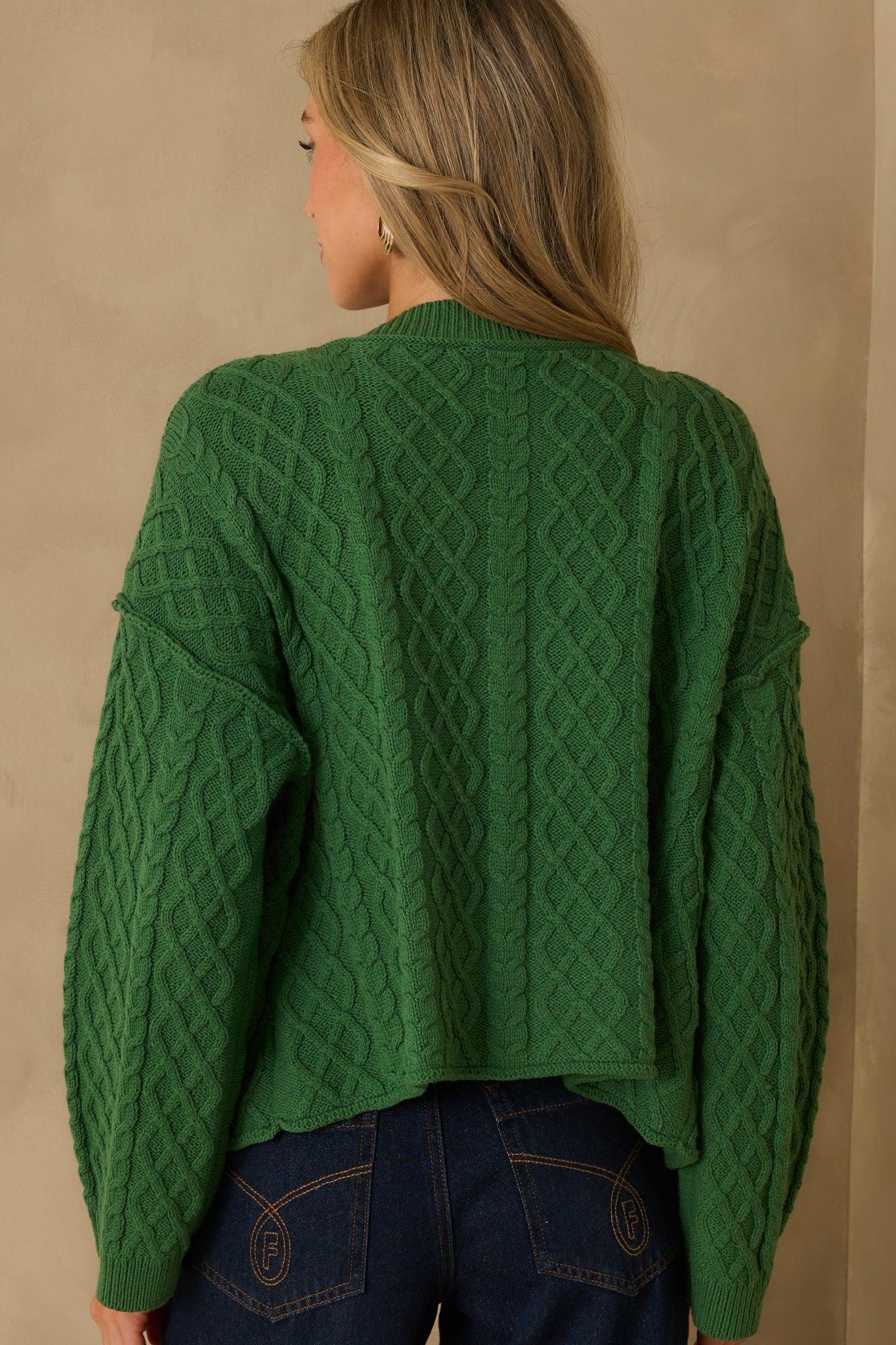 The For Old Time’s Sake Forest Green Cable Knit Button Up Cardigan brings back that timeless, cozy charm you can count on, making every outfit feel warm, classic, and effortlessly stylish. This forest green cardigan features a cable knit design, v-neckline, functional button front, faux front patch pockets, long sleeves, ribbed hems, and a relaxed fit. 60% Cotton & 40% Acrylic Unlined Hand Wash Cold Manufactured in China Designed in The USA Model is 5'8" and is Wearing a Size Small