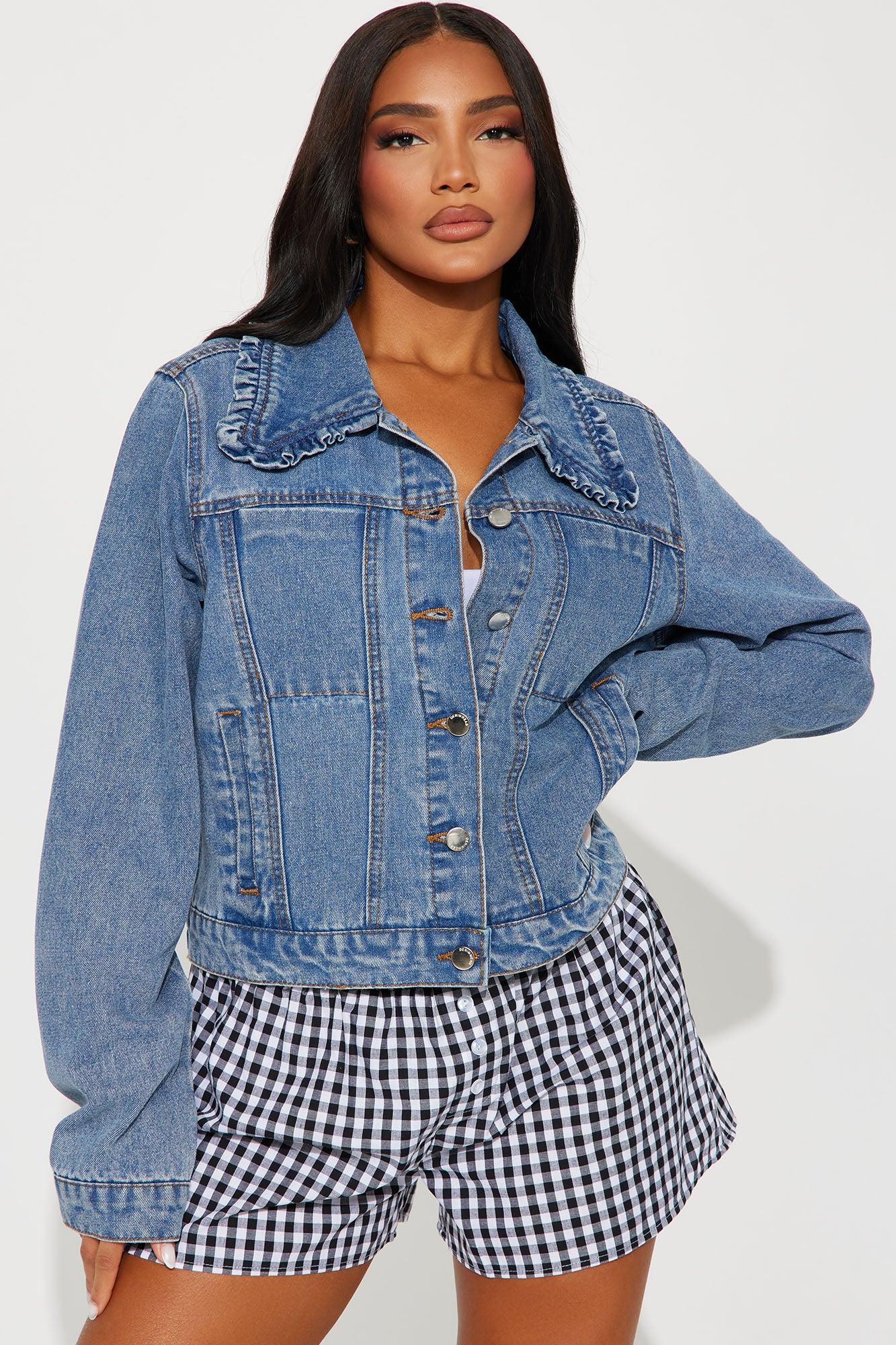 For The Frill Of It Denim Trucker Jacket - Medium Wash Female