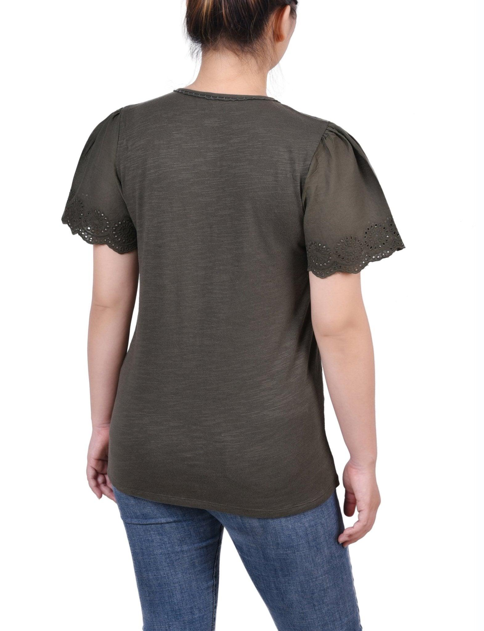 Forest Night Short Flutter Eyelet Sleeve Pullover