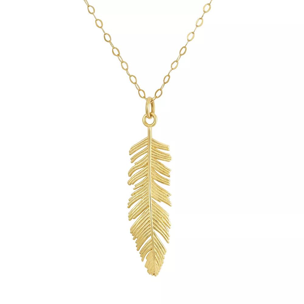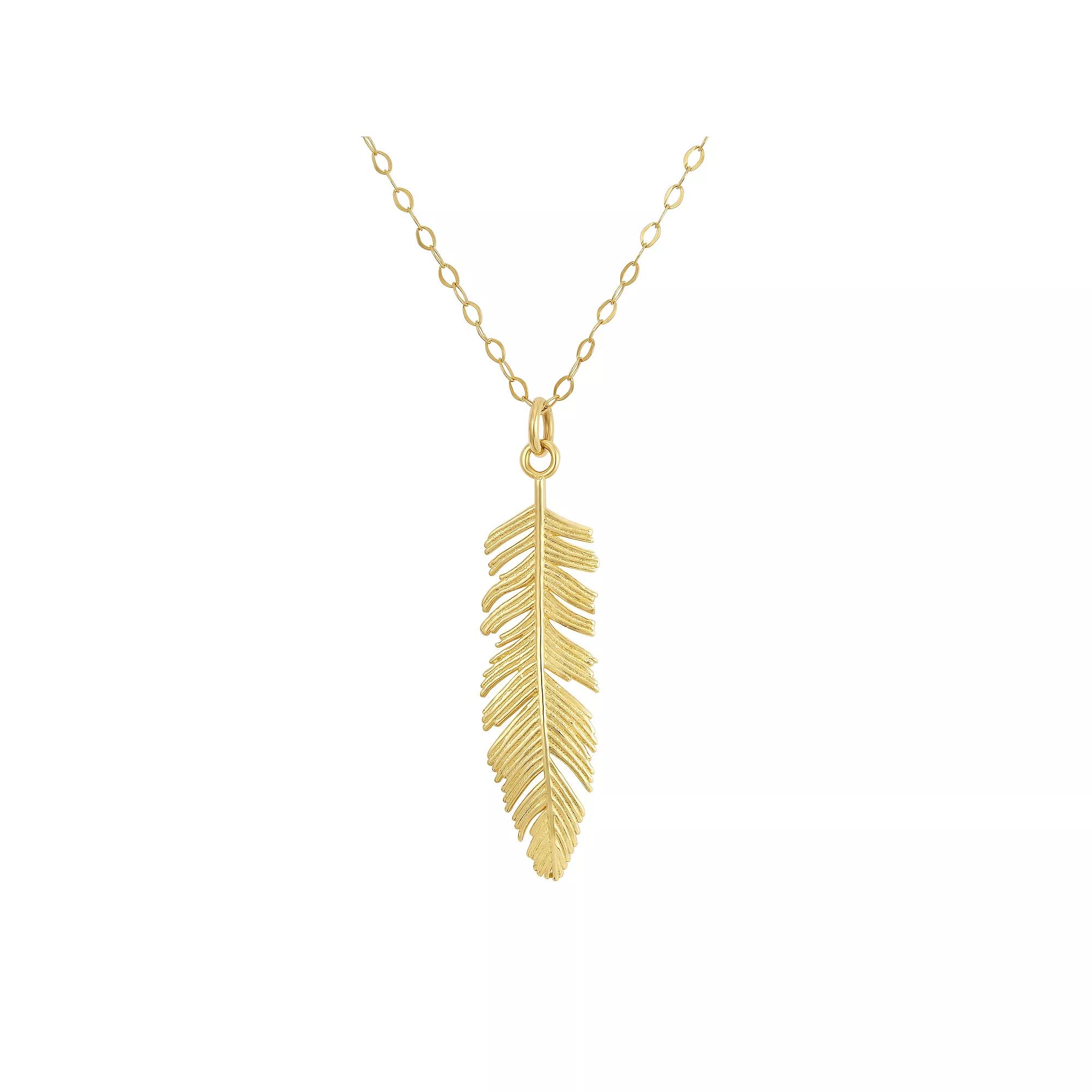 Finish off any ensemble in style with this Forever 14K gold feather pendant necklace. Finish off any ensemble in style with this Forever 14K gold feather pendant necklace. FEATURES Pendant size: 1.24 in. x 0.27 in. Chain length: 18 in. + 2-in. extender Chain type: cable Clasp: spring-ring Metal: 14k gold Finish: diamond-cut,Finish: textured Packaging: boxed Nickel free Size: One Size. Color: Yellow. Gender: female. Age Group: adult.