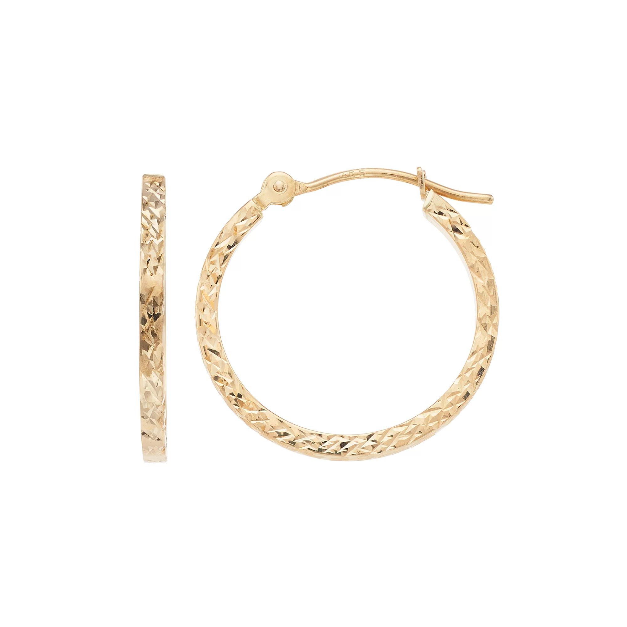 Forever 14K Textured Square Edge Hoop Earrings, Women's, 14k Gold