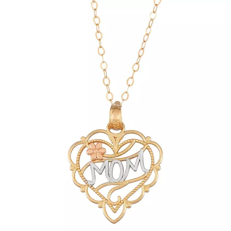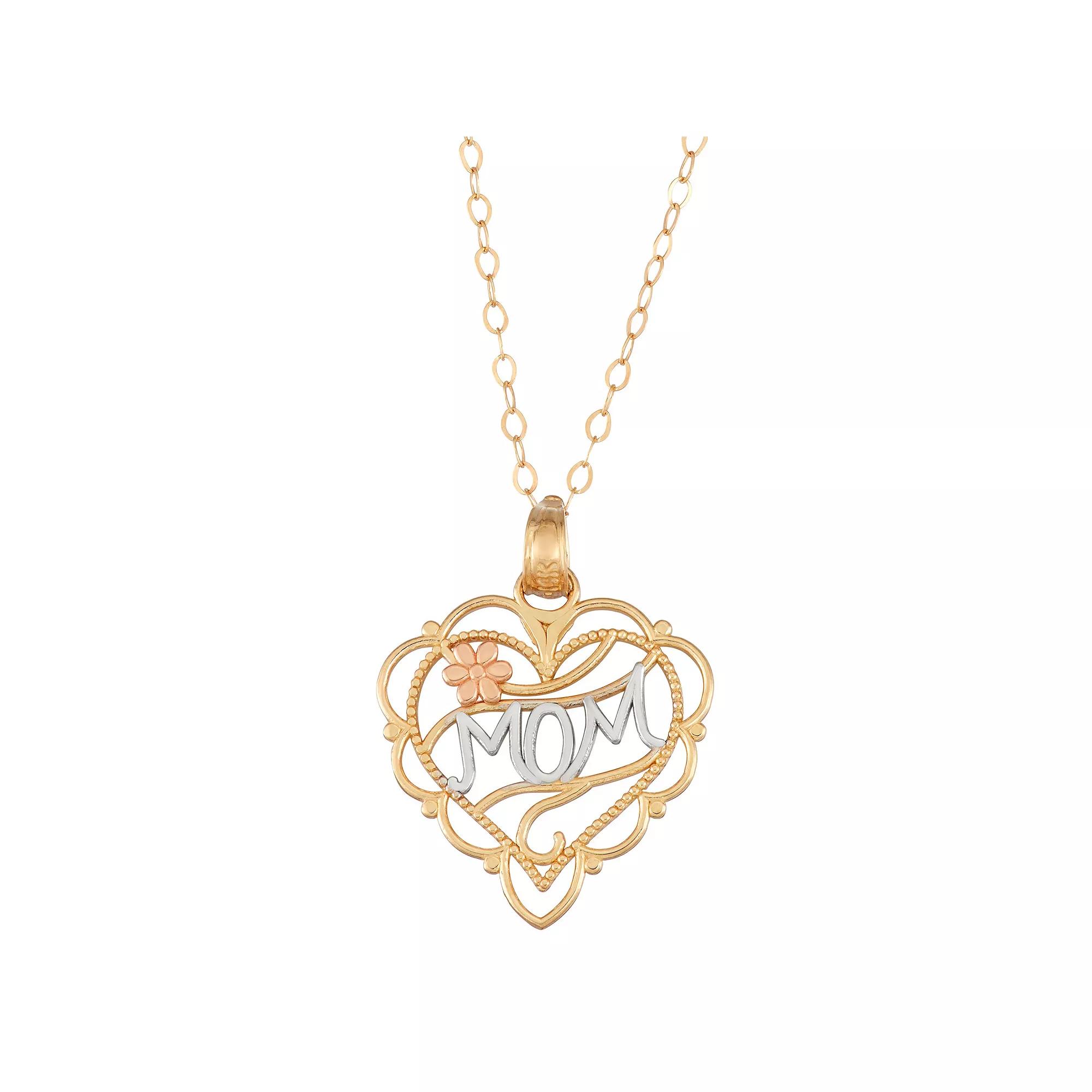 Celebrate love with this Forever 14k Tri-Tone Gold Mom Heart Pendant Necklace. Featuring warm hues of gold and an elegant heart design, it's a meaningful and stylish tribute to Mom. Click on this JEWELRY & WATCHES GUIDE to learn about fit, styles, materials and more! Celebrate love with this Forever 14k Tri-Tone Gold Mom Heart Pendant Necklace. Featuring warm hues of gold and an elegant heart design, it's a meaningful and stylish tribute to Mom. Click on this JEWELRY & WATCHES GUIDE to learn about fit, styles, materials and more! FEATURES Dimensions: 0.81"L x 0.63"W Chain length: 18 in. Chain type: cable Clasp: spring-ring Nickel free Metal: 14k gold Plating: 14k rose gold, rhodium Finish: polished Size: 18". Color: 14k Tone. Gender: female. Age Group: adult.
