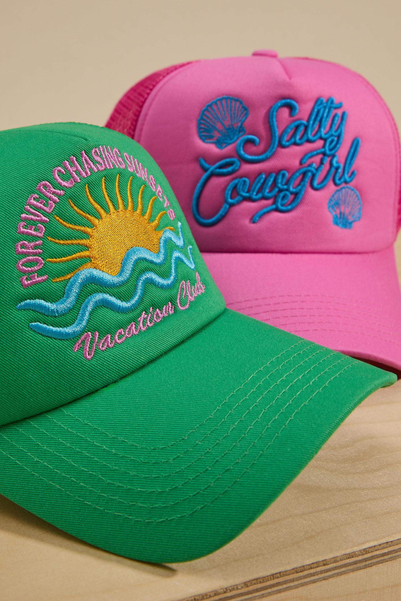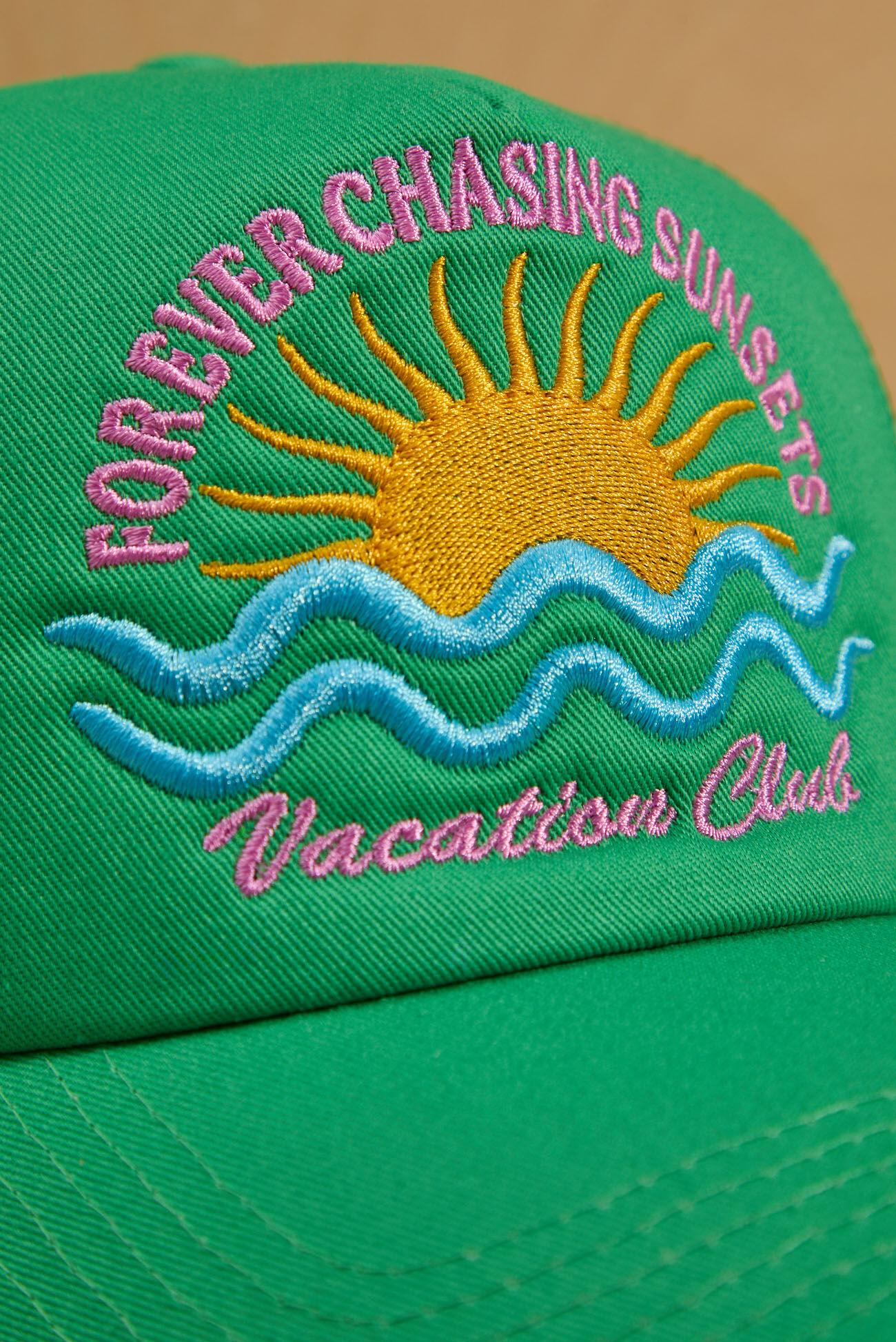 Chase those magical summer nights in style with our 'Forever Chasing Sunsets' trucker hat. This vibrant green hat is an absolute need for every fun-filled evening under the stars.