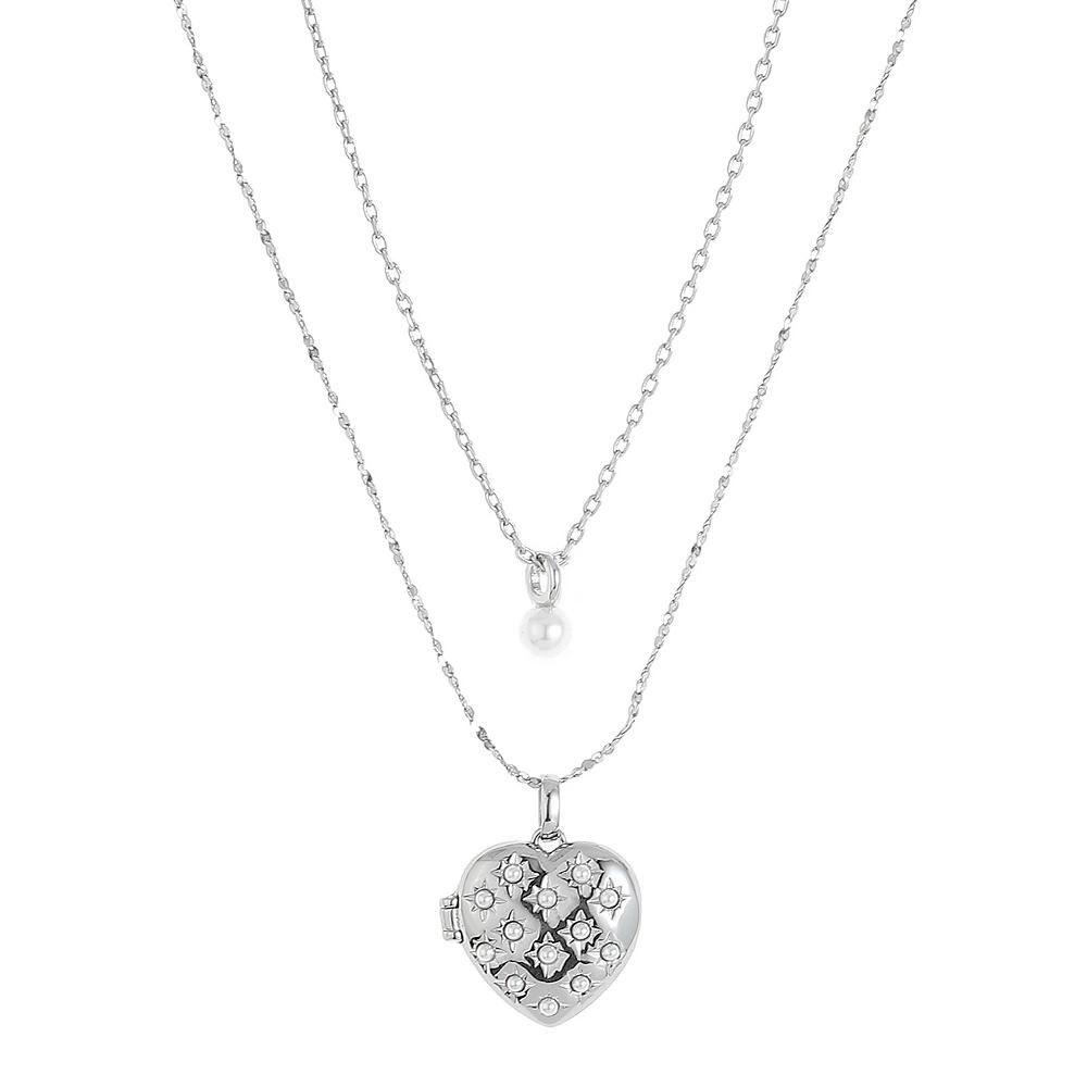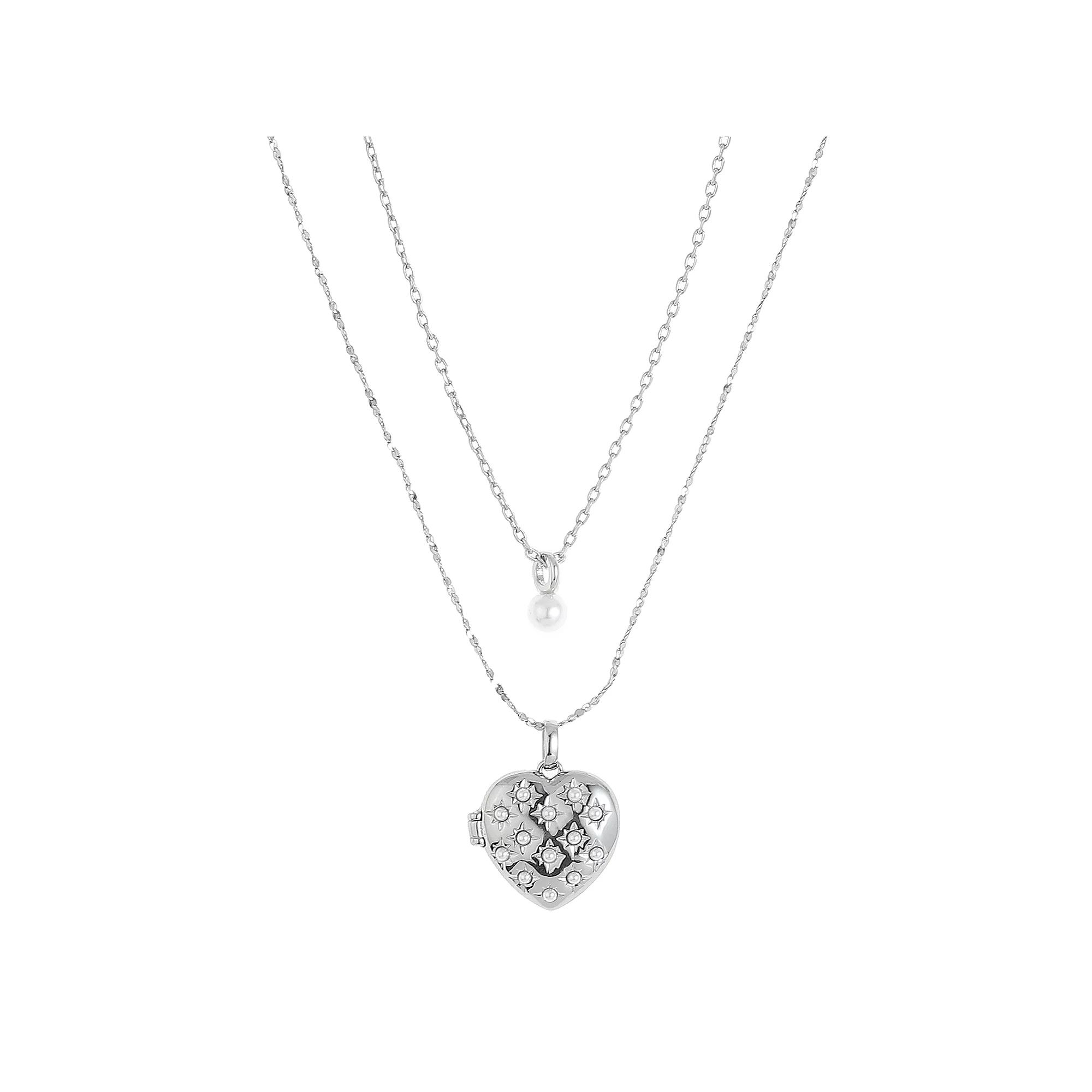 Give a beautiful gift she'll love with this Simulated Pearl & Heart Locket Necklace Set. Click on this JEWELRY & WATCHES GUIDE to learn about fit, styles, materials and more! Give a beautiful gift she'll love with this Simulated Pearl & Heart Locket Necklace Set. Click on this JEWELRY & WATCHES GUIDE to learn about fit, styles, materials and more! FEATURES Includes: pendant necklace & locket necklace Locket dimensions: 0.86" L x 0.69" W Photo slots: 2 Chain length: 18 in., 16 in. + 2-in. extender Chain type: cable, serpentine Clasp: spring-ring Metal: brass Plating: fine silver Finish: polished Material: glass Packaging: boxed Nickel free Imported Size: 16/18". Color: Silver Tone. Gender: female. Age Group: adult.