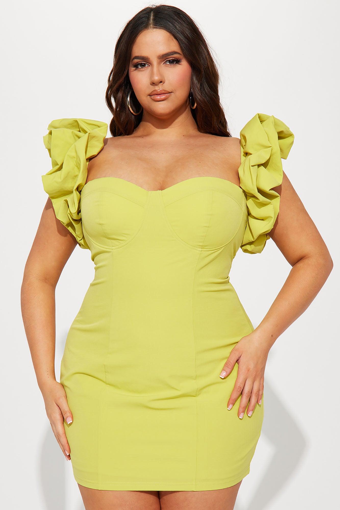 Forever Princess Ruffle Mini Dress - Chartreuse