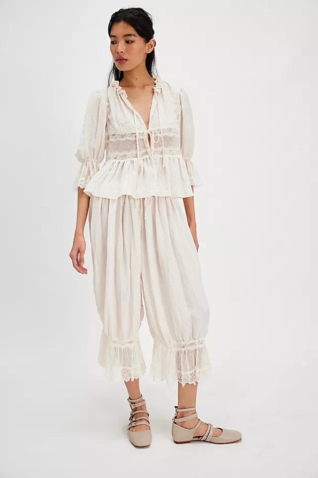 An elevated take on the classic bloomers, these pants feature a soft fabrication and mid-rise fit with feminine lace trim and functional tie-front detailing.