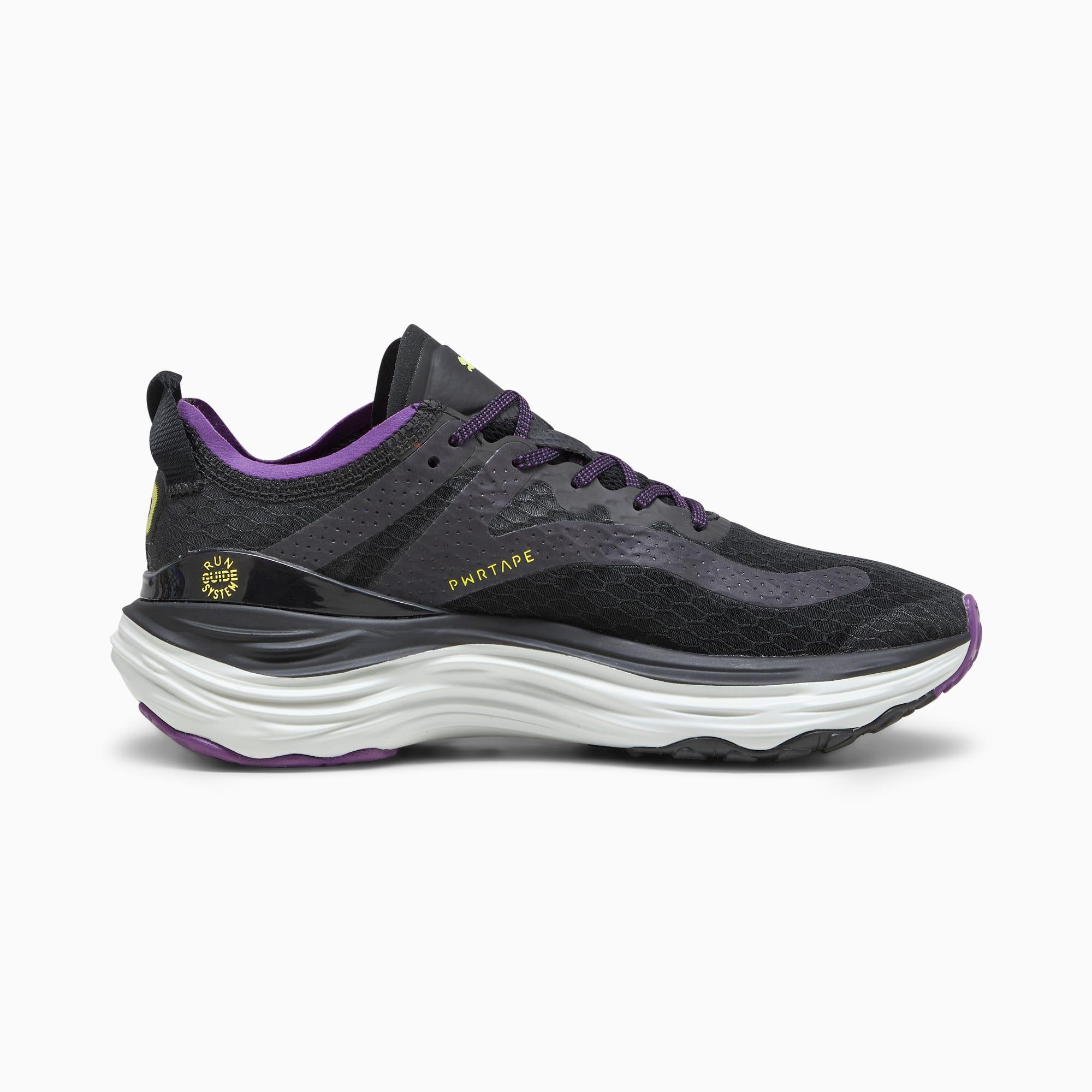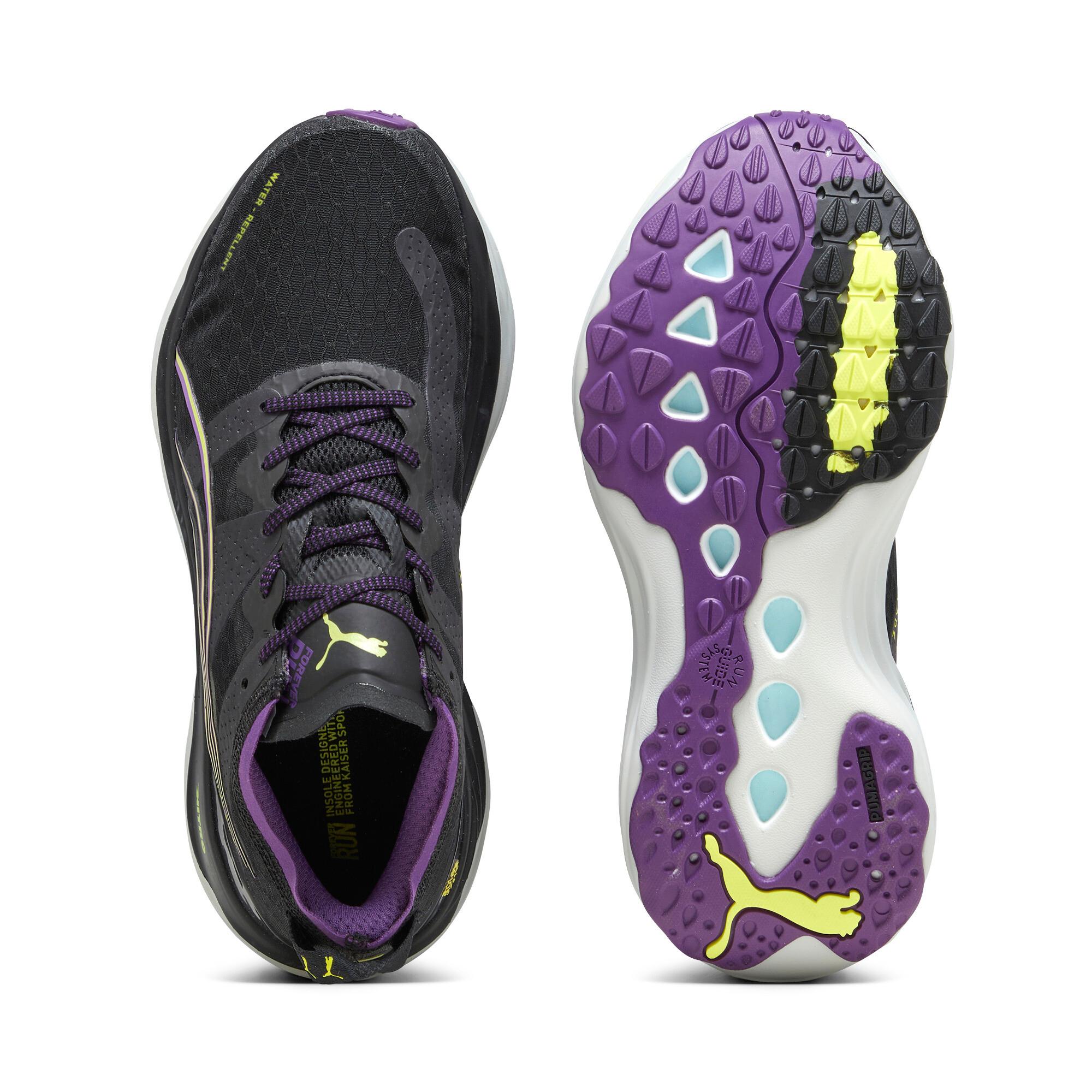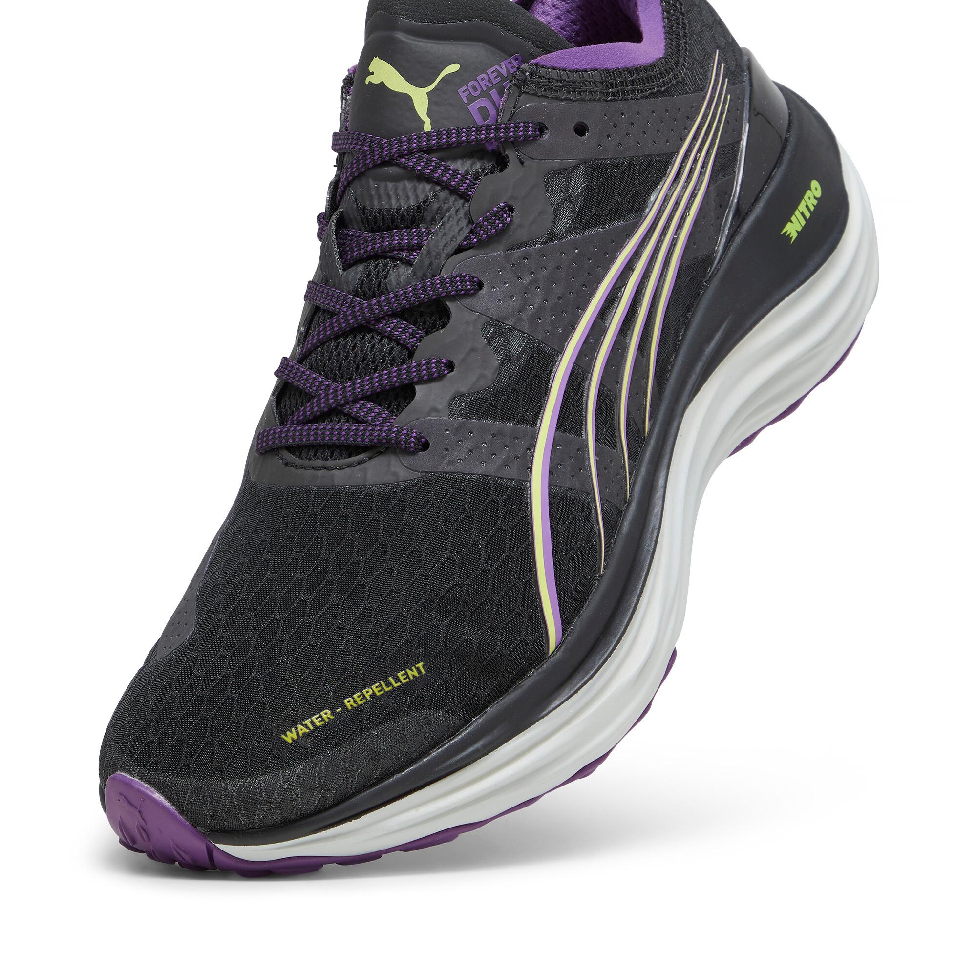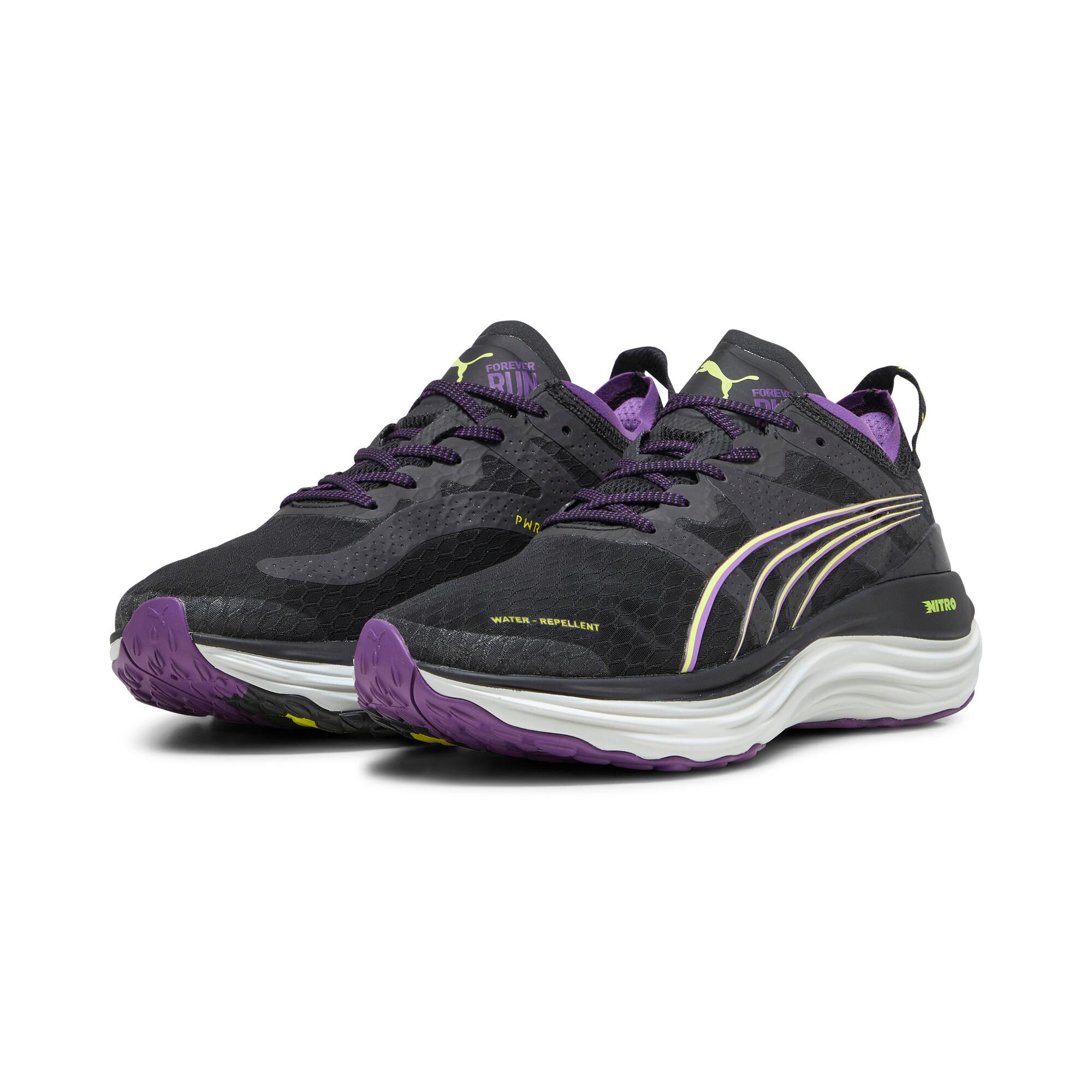 descriptionThe water repellent women's ForeverRun NITRO™ dawns a new era of support and guidance for all runners, providing the softness of a full NITROFOAM™ midsole without compromising stability. It features a newly developed NITROFOAM™ midsole with two different densities – a softer core with a firmer rim – and an asymmetrical heel counter to hold the foot in place through every stride. The theme continues on the outsole, thanks to a wider medial rubber segment stabilising late-stage pronation. Plus, with the water-repellent upper, it's the perfect blend of support, cushioning and comfort no matter the weather on your run.Style: 378473_01Color: PUMA Black-Purple Pop-Yellow Burstfeatures & benefitsdetailsmaterials & care