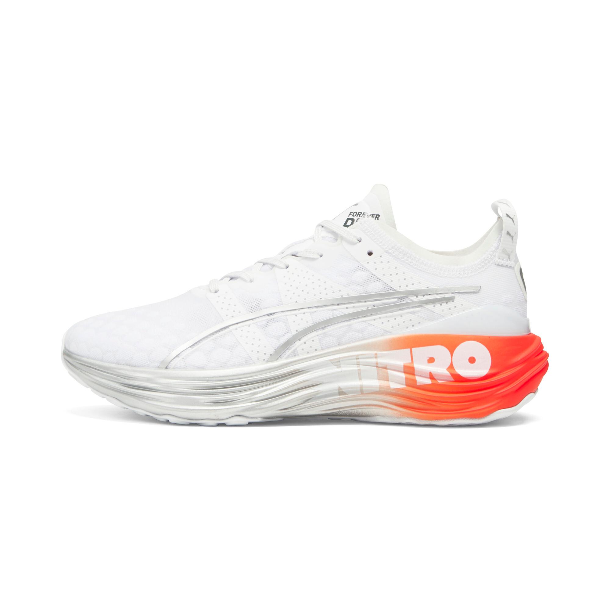 The ForeverRUN NITRO™ for women dawns a new era of support and guidance for all runners, providing the softness of a full NITROFOAM™ midsole without compromising stability. It features a newly developed NITROFOAM™ midsole with two different densities – a softer core with a firmer rim – and an asymmetrical heel counter to hold the foot in place through every stride. The theme also continues on the outsole, with a wider medial rubber segment that stabilises late-stage pronation. In short, it's the perfect blend of support and cushion.NITRO™: Advanced nitrogen-infused foam designed to provide superior responsiveness and cushioning in a lightweight packagePWRTAPE: Targeted upper reinforcement for support and durabilityRUNGUIDE: Firm density guide rail designed to keep your foot aligned and centred through each stridePUMAGRIP: Durable performance rubber compound designed for all-surface tractionEngineered mesh upperMoulded heel technologyFlared rubber outsoleCushioning level: MaxShoe pronation: OverpronationHeel-to-toe drop: 10mm