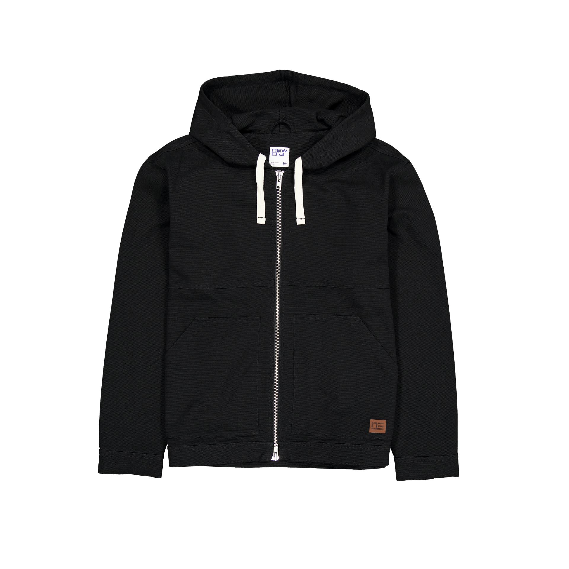 Cut from the same cloth as our New Era caps, we redeveloped our OG heavy weight Cotton Canvas fabric into a range of durable outerwear and pants that match perfectly back to all your favorite headwear. The Forge Hooded Work Jacket features: Adjustable drawstring at the hood Full-zip closure Adjustable buttons at hem and cuffs Kangaroo style pockets Color: Black Fabrication: 100% Cotton