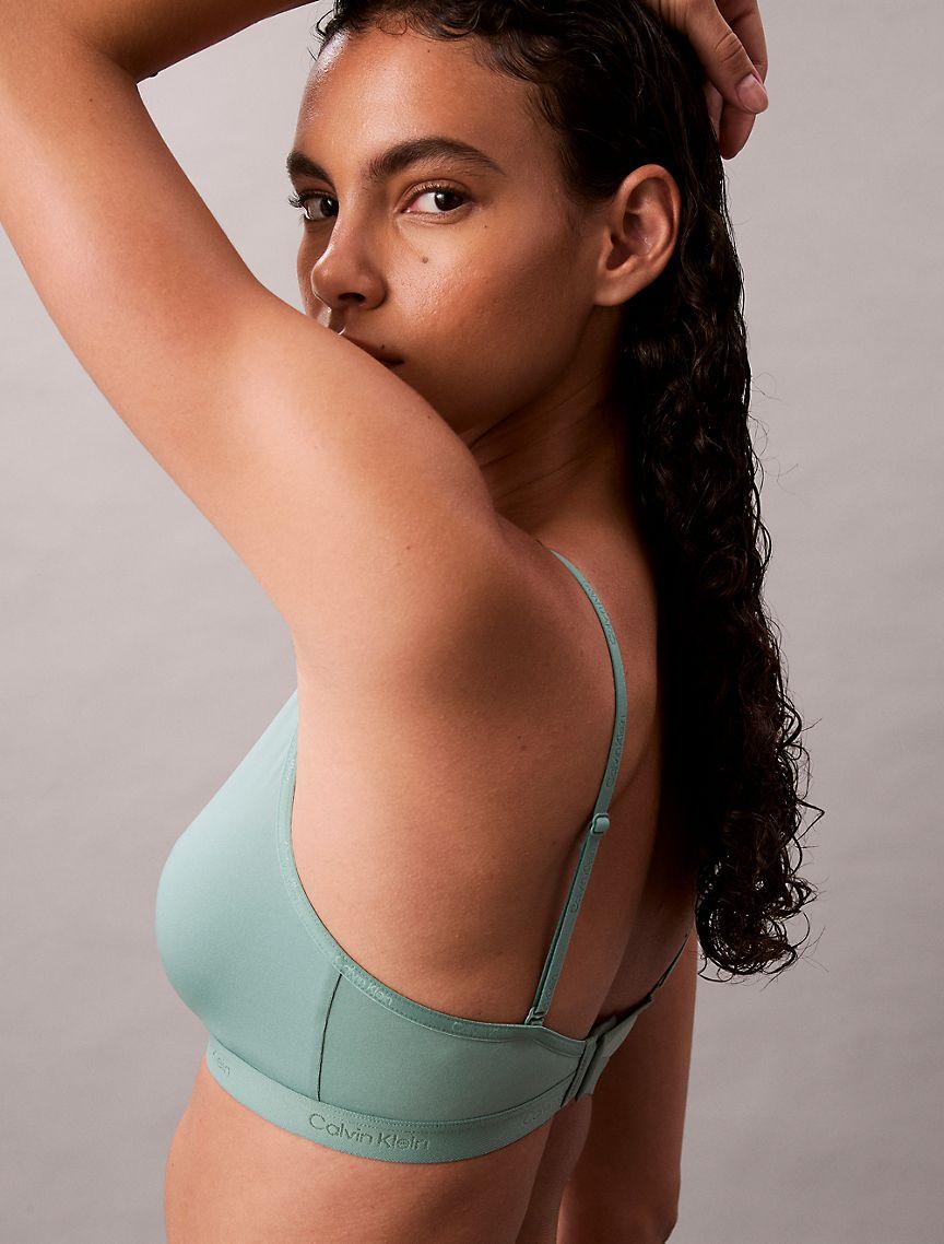 Styled in natural tones with a second skin feel for optimal comfort and support. This Calvin Klein lightly lined triangle bralette features a tonal repeating logo band for a flexible fit, a v-neck and fully adjustable slim straps. Embracing togetherness, united through color.