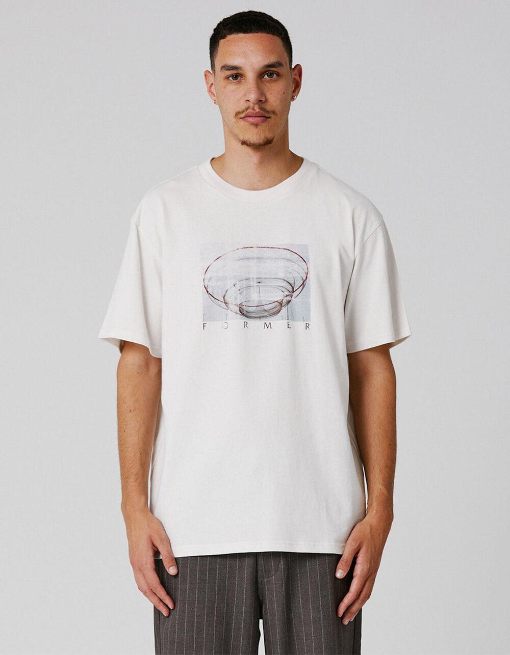Former Coil Tee. Graphic screened on front. Crew neck. Short sleeve. 100% Cotton. Machine wash. Imported.