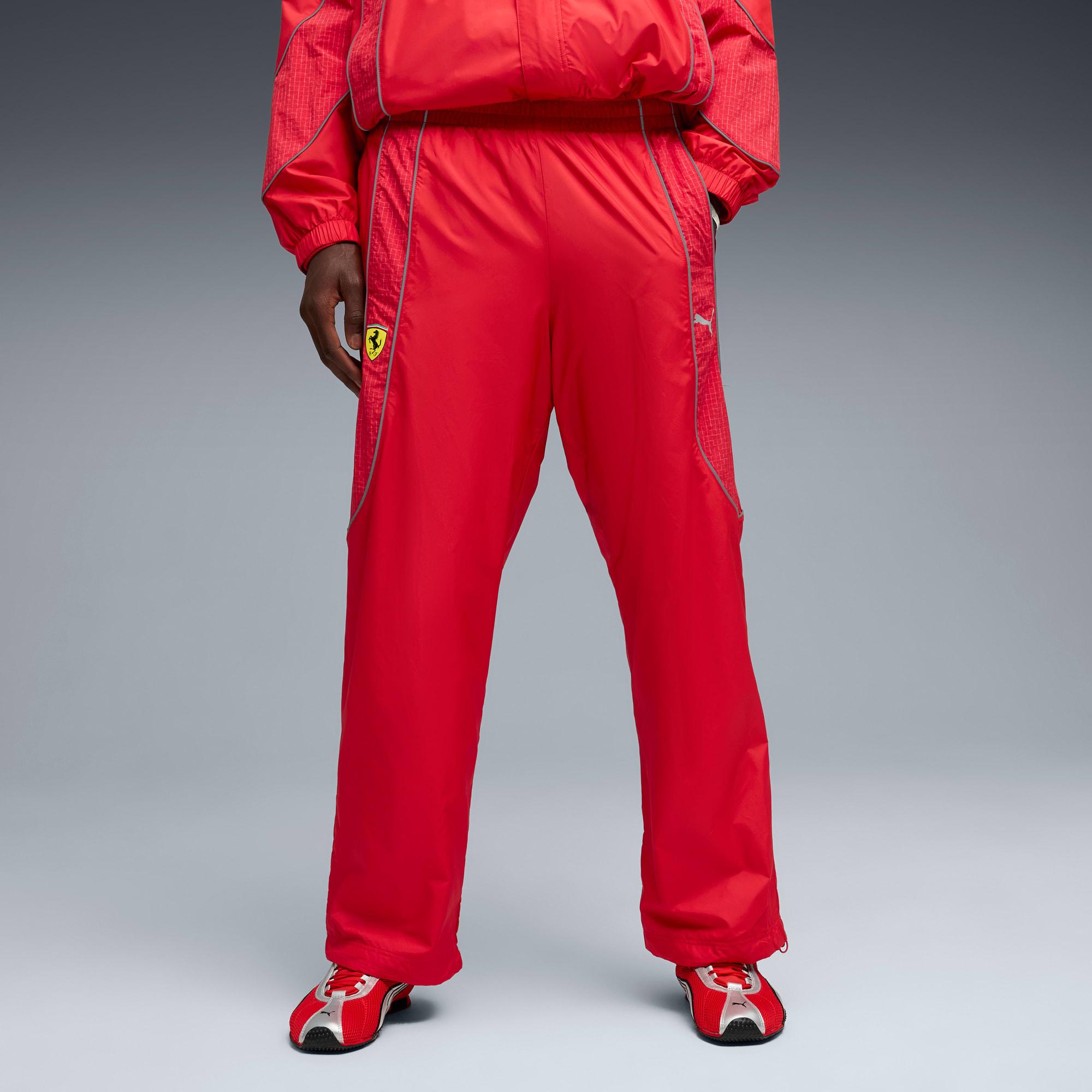 descriptionThe PUMA and Scuderia Ferrari collection is a tribute to motorsport excellence and Ferrari's legendary racing heritage. This range of shoes, clothes, and accessories combines style, comfort, and performance with the iconic Scuderia Ferrari colours and details, so you can embrace the Ferrari legacy wherever you go. Infused with racing DNA, these pants have a bold, dynamic silhouette.Style: 634228_02Color: Rosso Corsameasure & sizeModel informationModel is 6' 1" tall and is wearing size M.features & benefitsMade with 100% recycled material excluding trims & decorations.detailsFit: RelaxedMain material type: Plain weaveLength: RegularRise: MediumPUMA branding detailsmaterials & careMaterial informationInserts: 93% nylon, 7% polyesterUpper Pocket Bag: 100% polyesterLining: 100% polyesterShell: 100% polyesterCare instructionsWash with similar coloursWash and iron inside outExclusive of DecorationUse detergent for coloursDo not iron accessories/trims